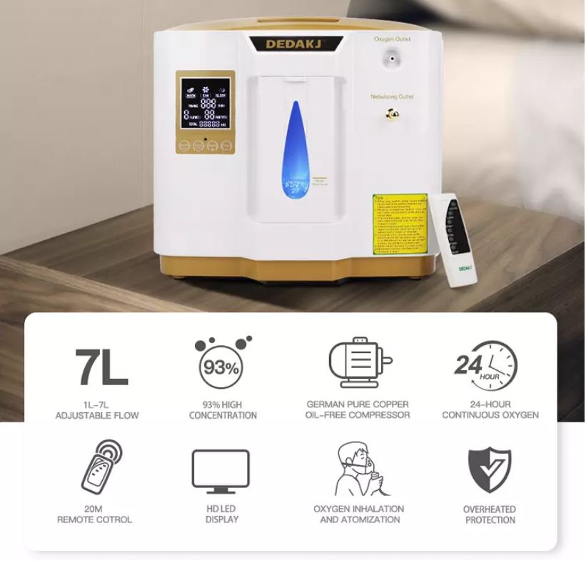 DE-1LW Golden Home Oxygen Concentrator Lightweight Oxygen Generator Output 1L-7L Nebulizer Machine