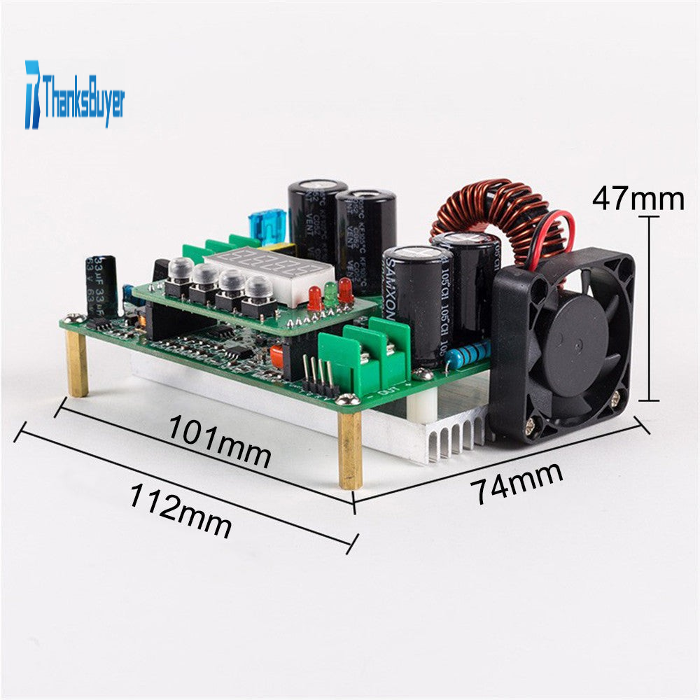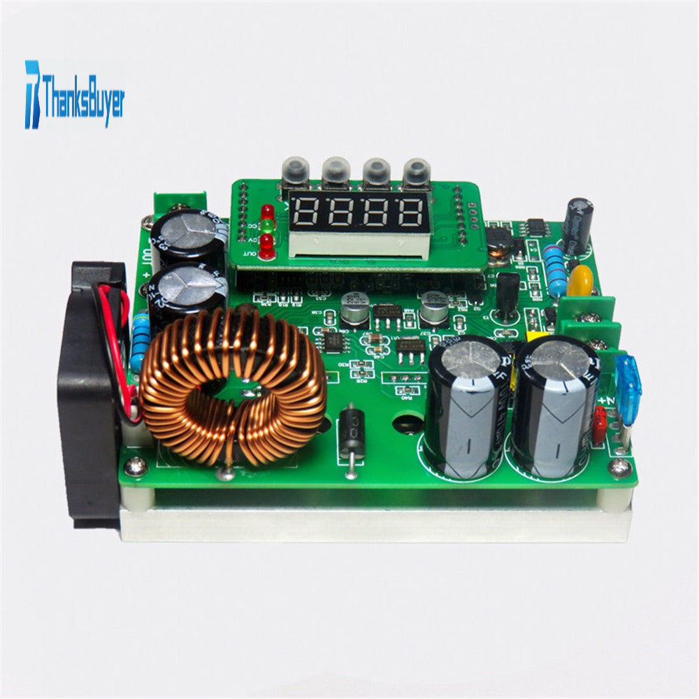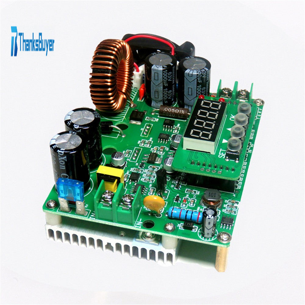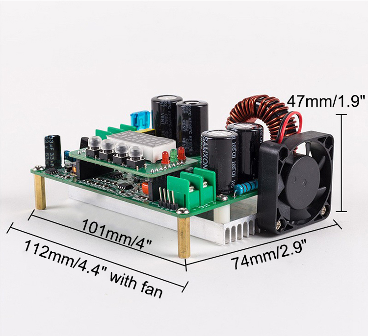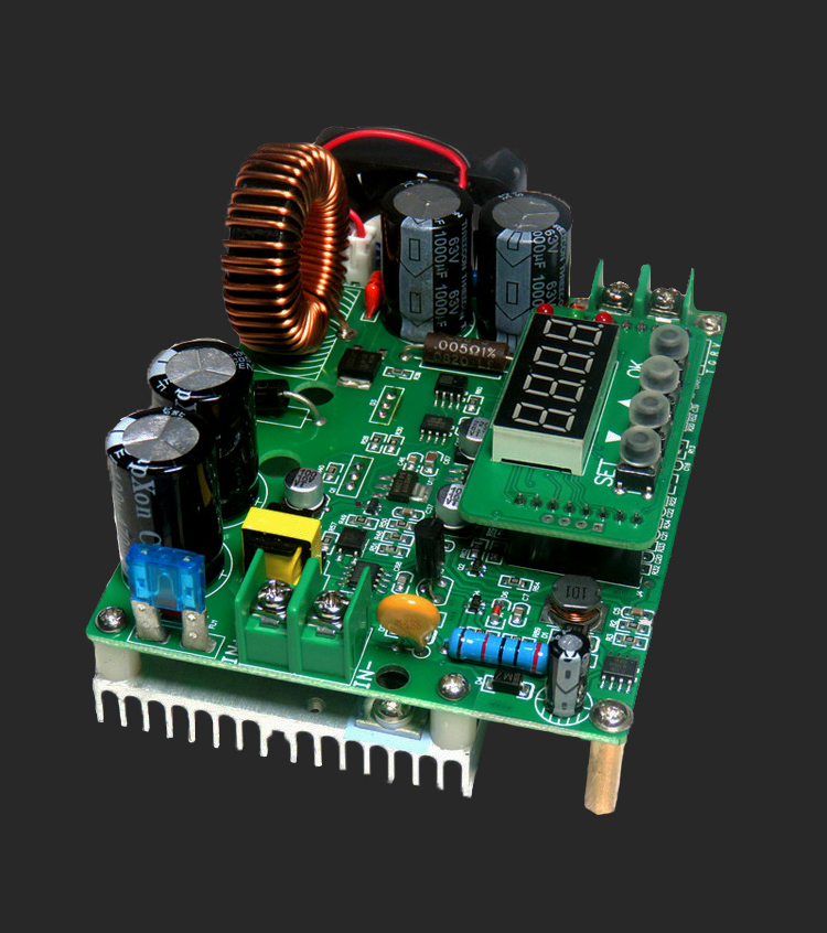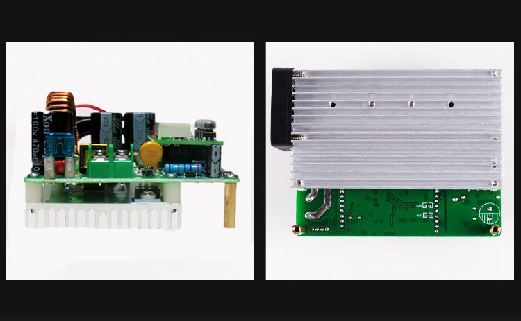 - Two 0.8 mm double-wire winding large current inductors; inputs adopt two 470uF/100V electrolytic capacitors. Output uses two 1000uF/63V electrolytic capacitors