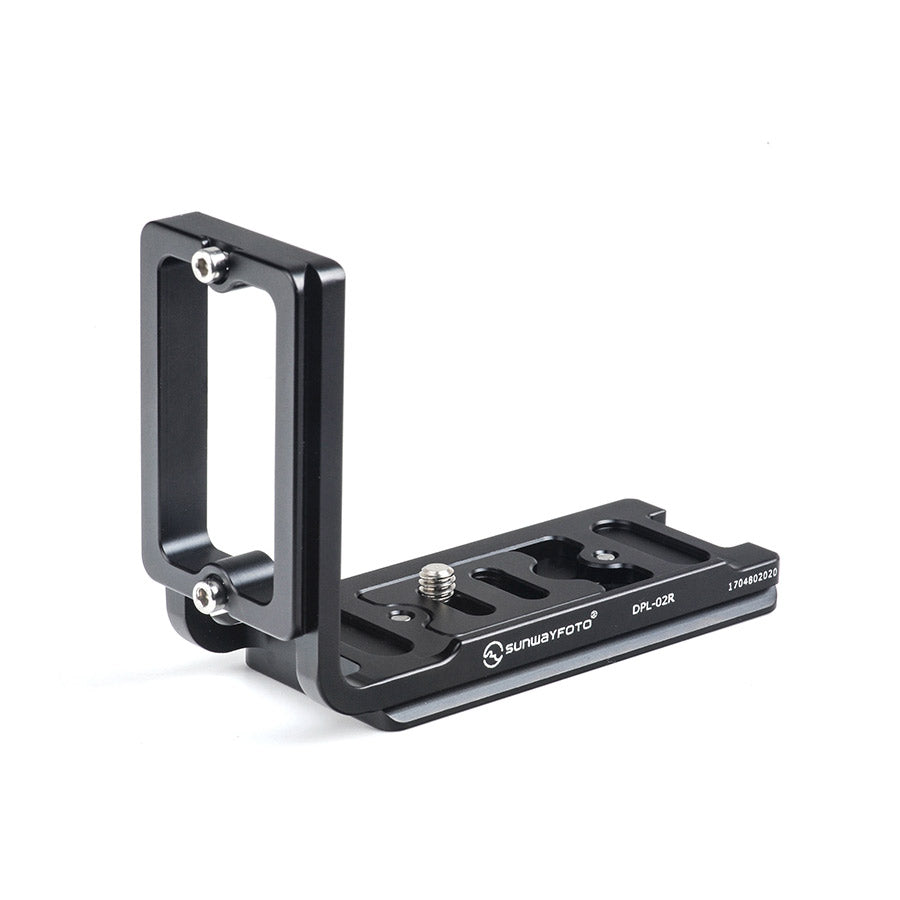DPL-02R universal L bracket, one piece CNC cutting machined from light weight aircraft-grade aluminum, stain anodized surface finish for better abrasion and corrosion resistant. For Arca-Swiss style. Ideal for a variety of traditional 135/120 SLR film cameras and digital SLR cameras without remote cable.