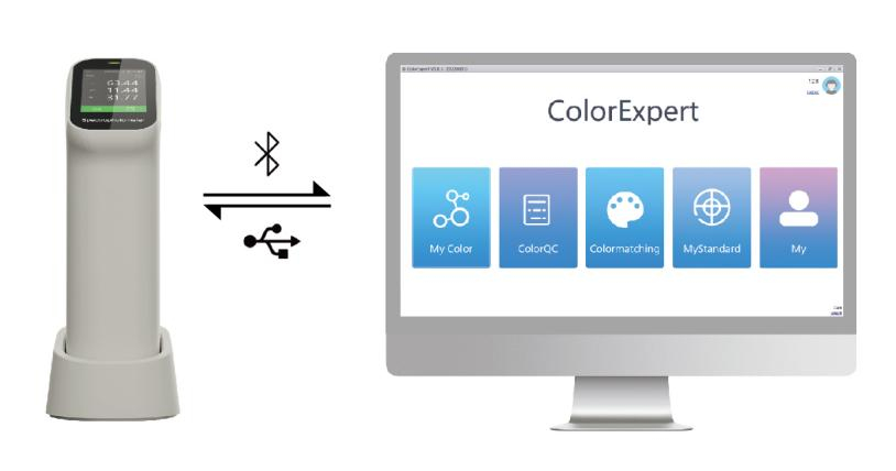 • The Windows color management system ColorExpert is included in the DS-200 series colorimeter package, which can be connected to the colorimeter through Bluetooth or USB cable.