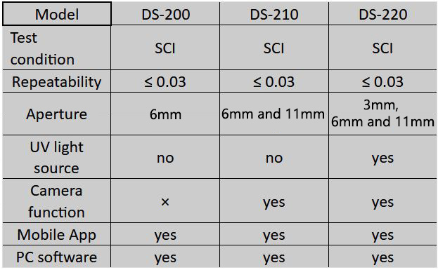 DS-200 series colorimeter still provide stable and objective reflectivity data for color measurement on surfaces containing fluorescent materials.