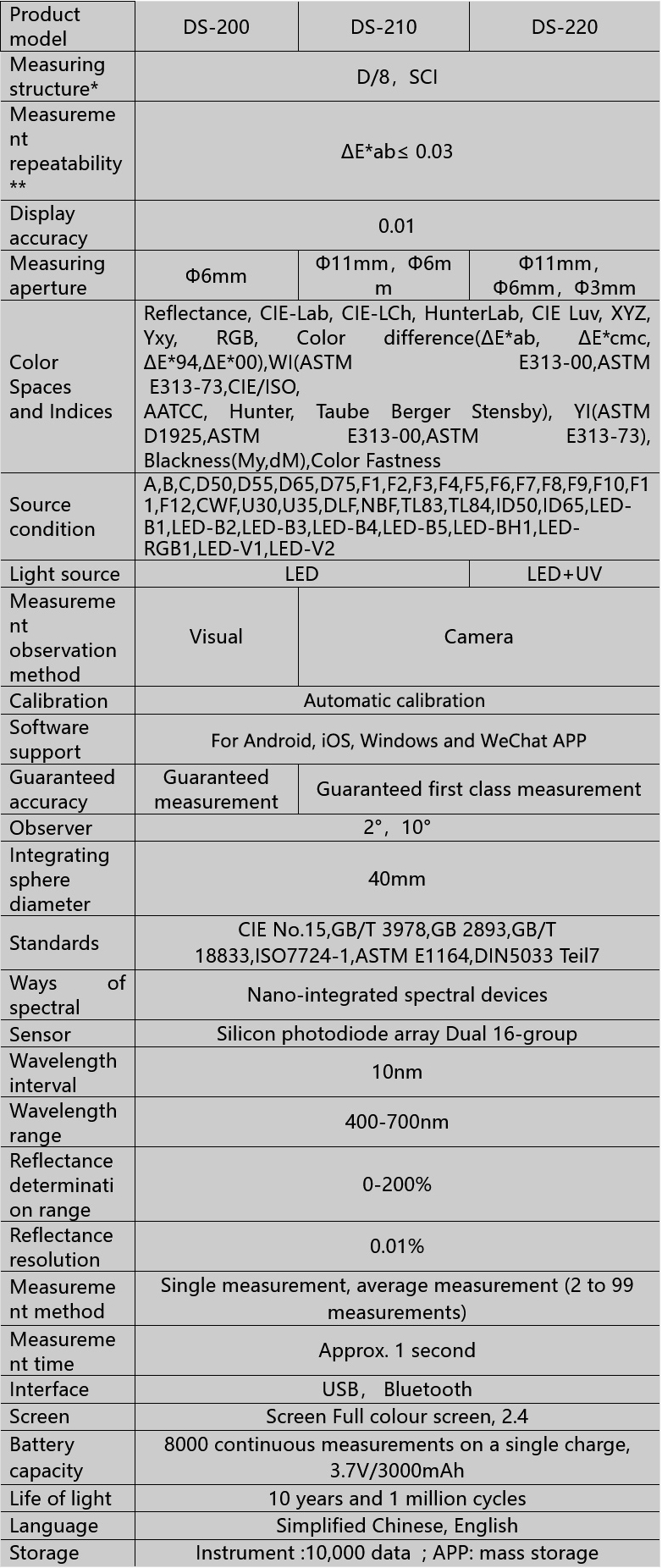 • The DS-200 series colorimeter can be connected to a variety of mobile phones via a rich mobile app.