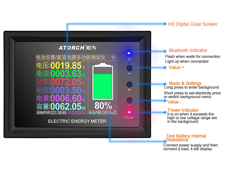 This product is used to detect the capacity of various batteries, various power adapters for discharge and aging, and detect the voltage, current, and power of various DC power supplies.