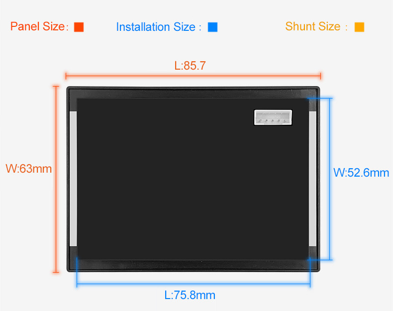 - Panel installation size: 75.8 x 52.6 mm (LxW)
