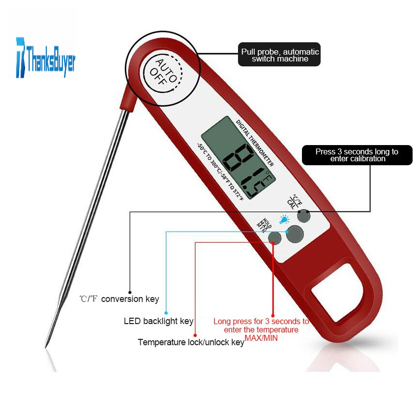 DTH-149 Kitchen Instant Read Digital Food Meat Thermometer -50℃ To 300℃/-58℉ To 572℉ Red