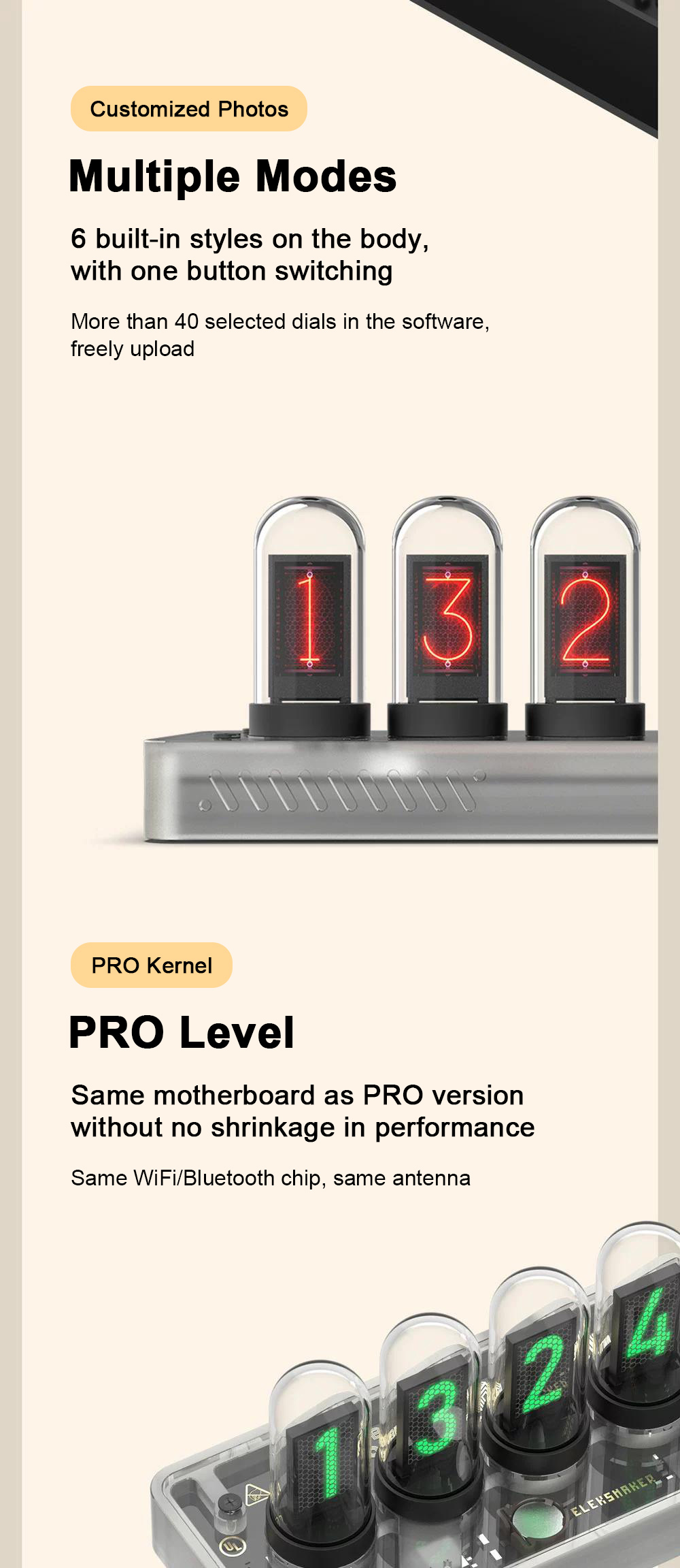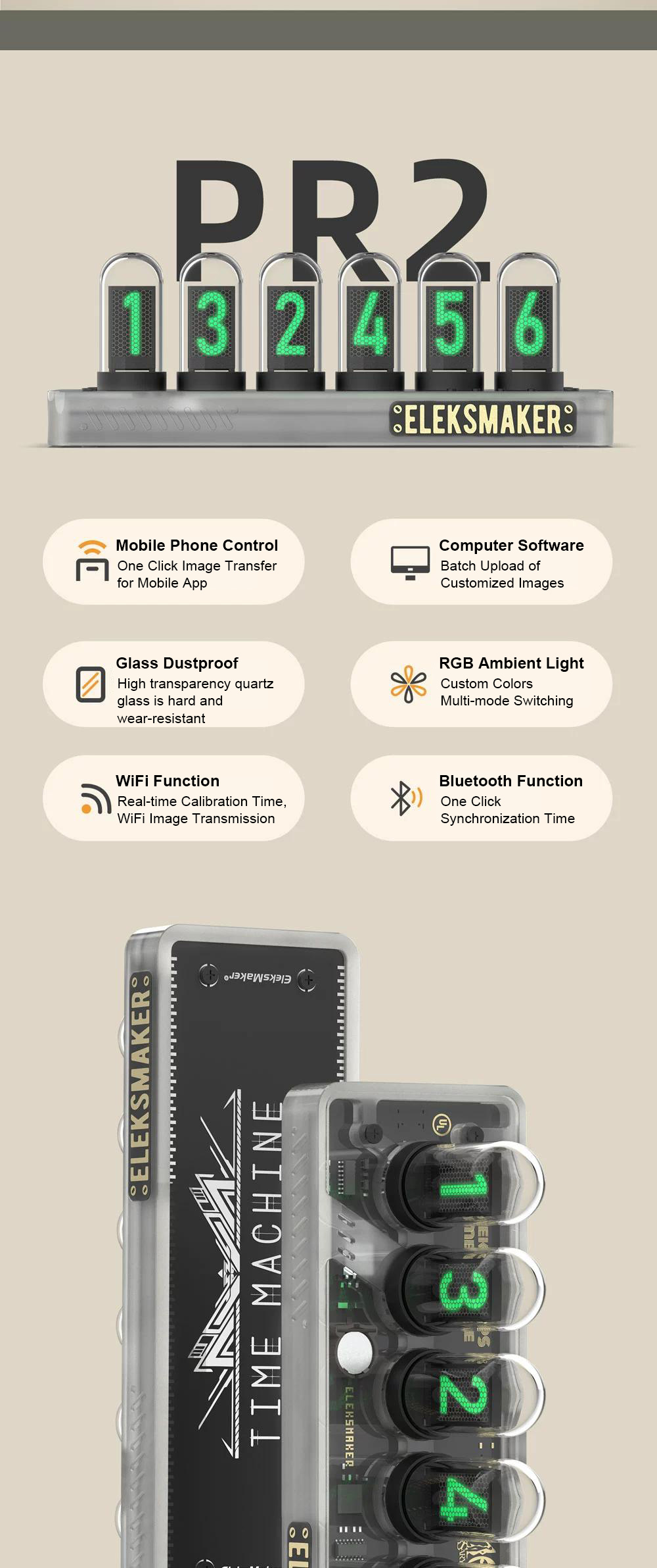 Eleksmaker Elekstube IPS PR2 RGB Nixie Tube Clock with WiFi and Bluetooth Function for Desktop Decoration