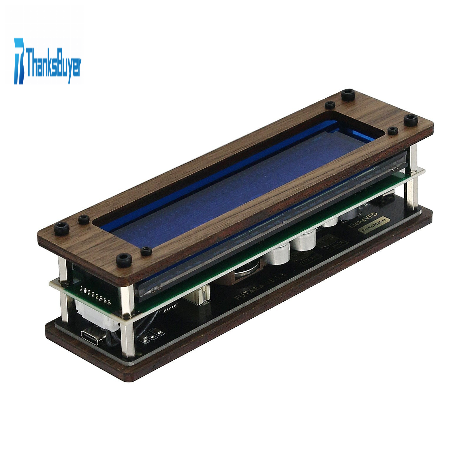 EleksVFD Desktop VFD Clock Retro Electronic Fluorescent Tube Clock Display Time Date (Wood Color)