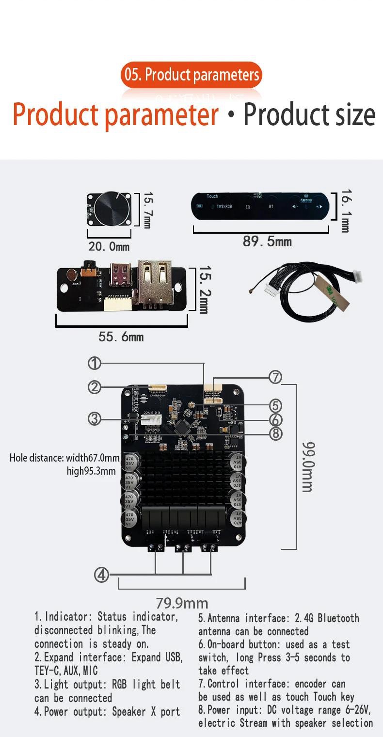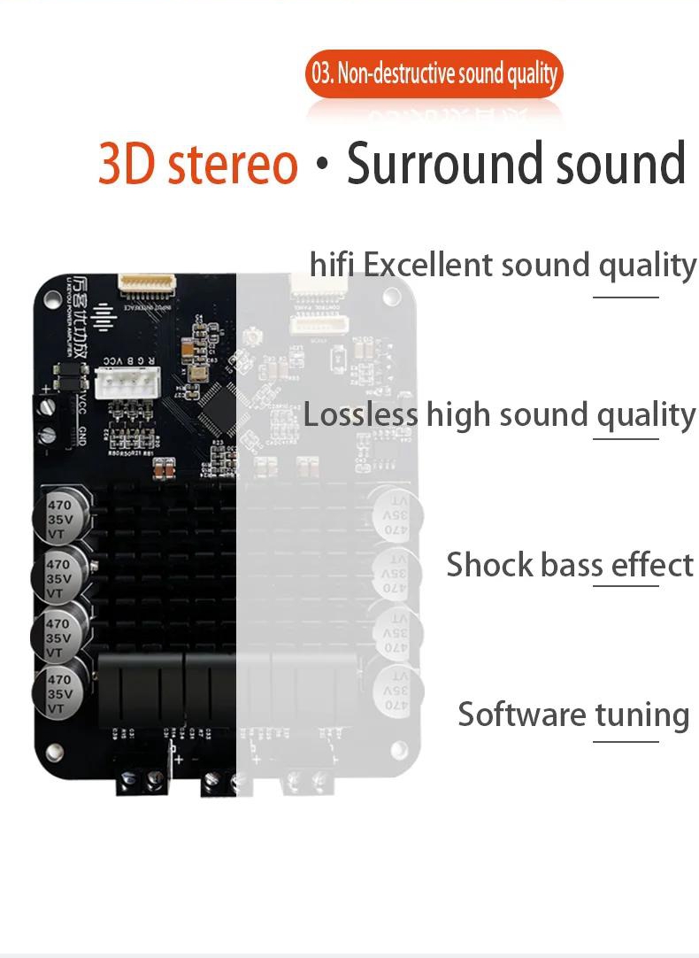 EX202/2170 Encoder Knob Version DSP2.1 Digital HiFi Stereo Power Amplifier Board 70Wx2+140W Support for TWS