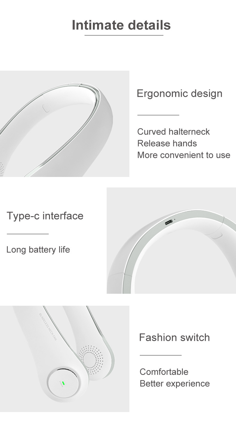 F12 Bladeless Neck Fan Rechargeable Portable Mini Fan Hanging Cooling Fan Creative Gift Outdoor Gear