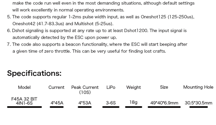 - 1 x F45A 6S 4IN1 (32bit) Brushless ESC