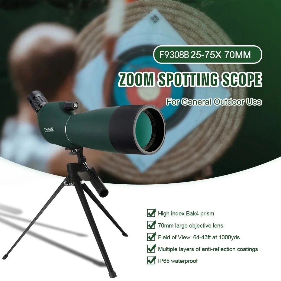 F9308B 25-75X70mm Spotting Scope Waterproof Monocular Telescope (Upgraded Version) with Tripod