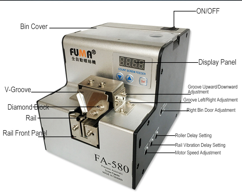 FA-580 Automatic Screw Feeder w/ Counting Digital Display Buzzer for 1-5mm Screws with Screw Cap