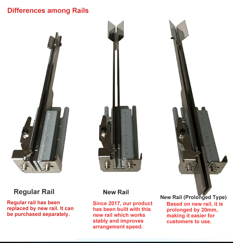 Note: Since 2017, our products have been built with the new rail which works stably and improves arrangement speed. If other kinds of rails are needed, please contact us for prices.