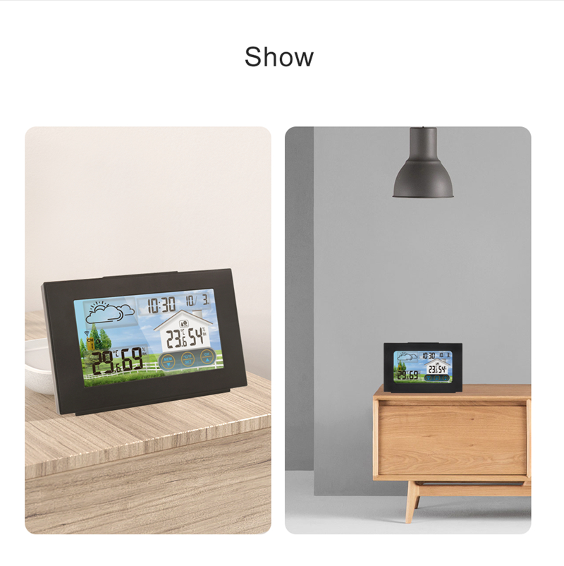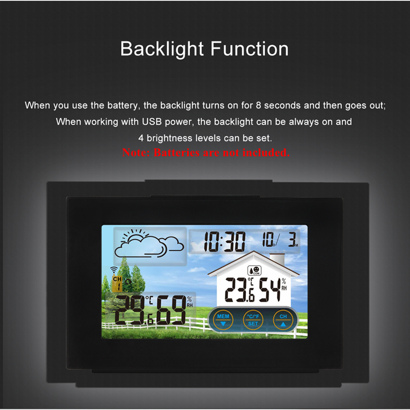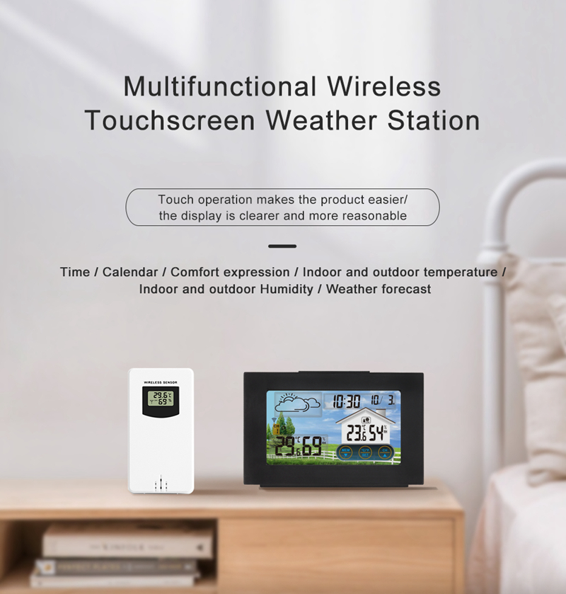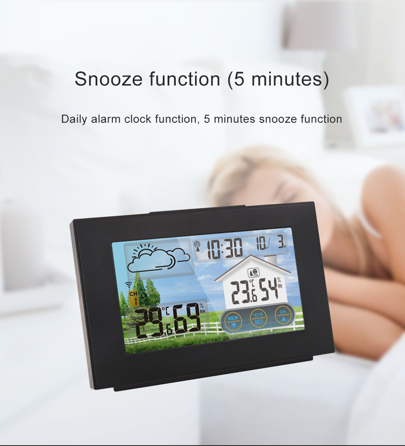 FanJu 3551A Touch Screen Weather Clock Alarm Clock Indoor Outdoor Thermometer Hygrometer Black