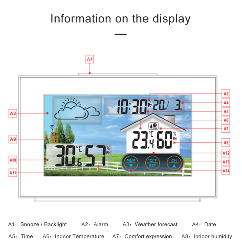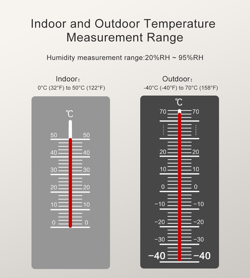 (6) Humidity: indoor and outdoor measurable range: 20%RH~95%RH