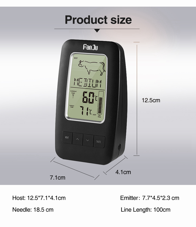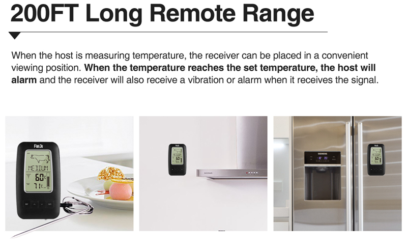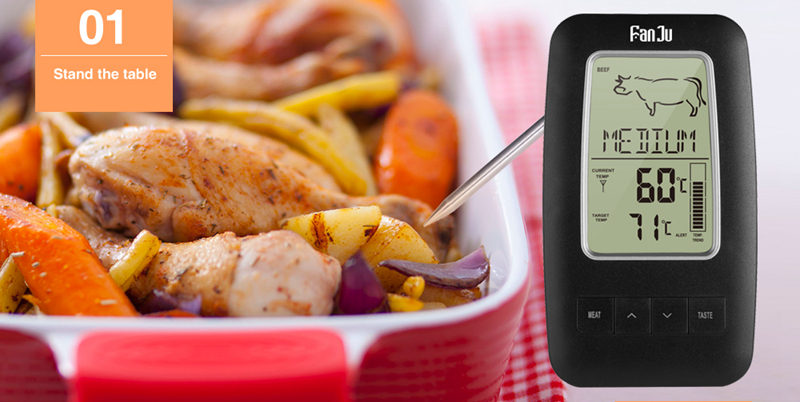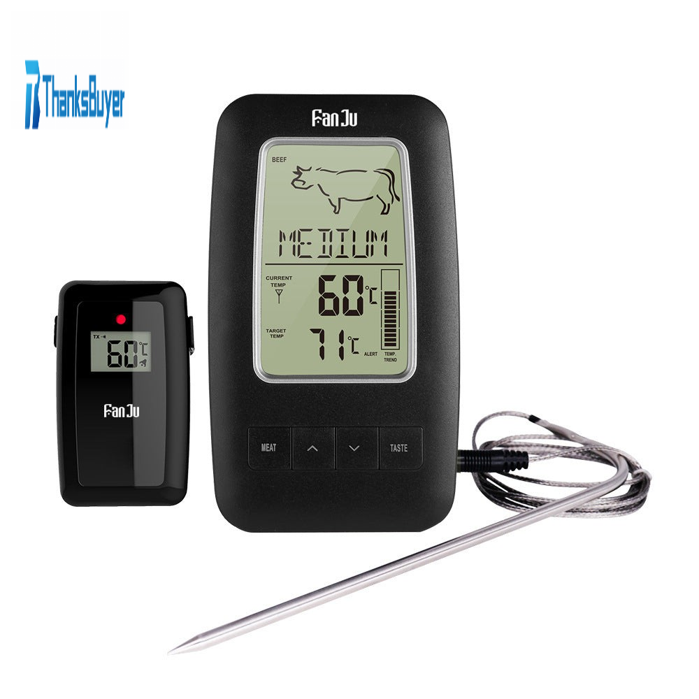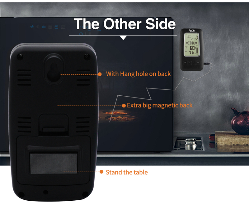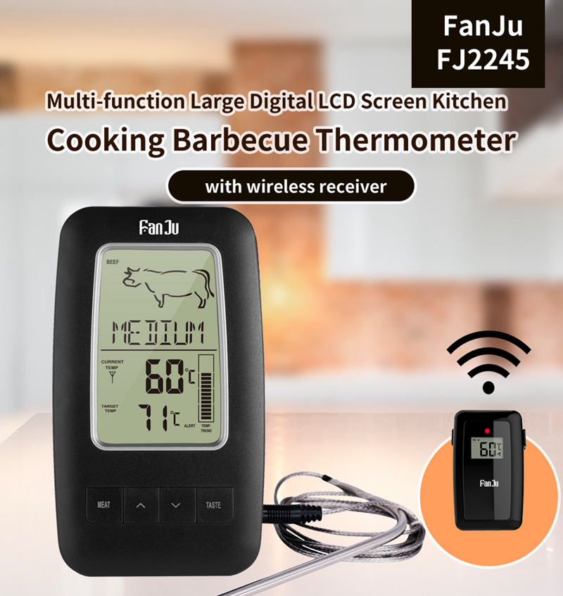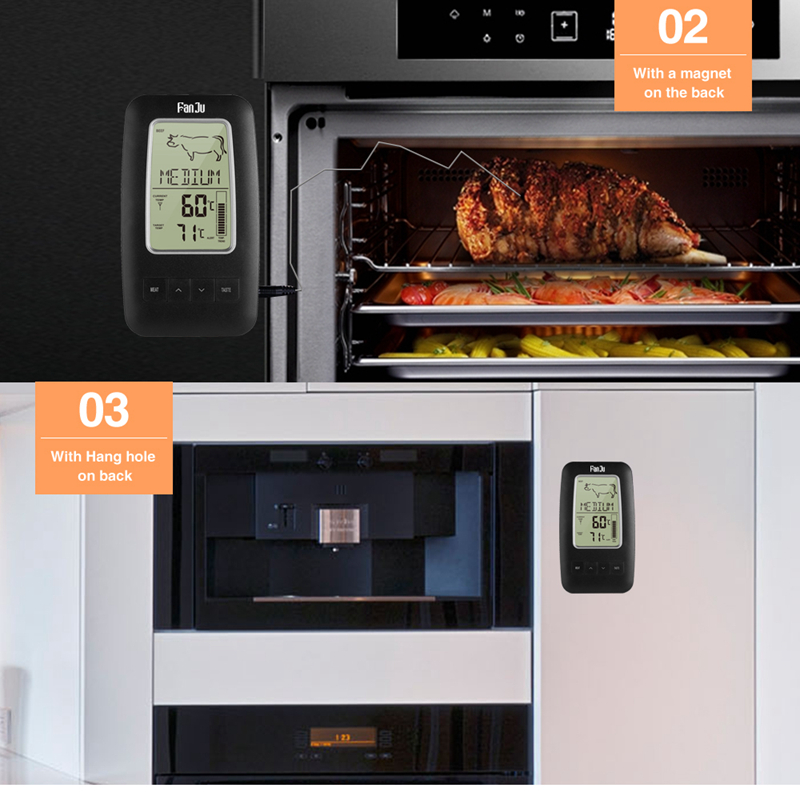 FanJu FJ2245 Wireless Kitchen Thermometer Meat Thermometer Wall Mounted w/ Probe Sensor For Food