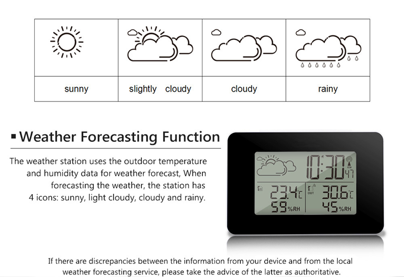 4. Humidity measurement. Indoor and outdoor measurable range: 20%RH~95%RH