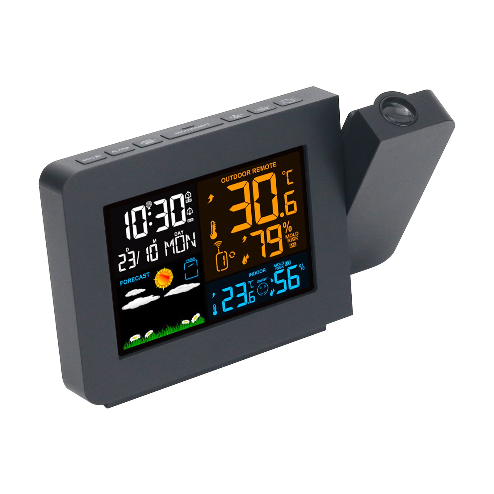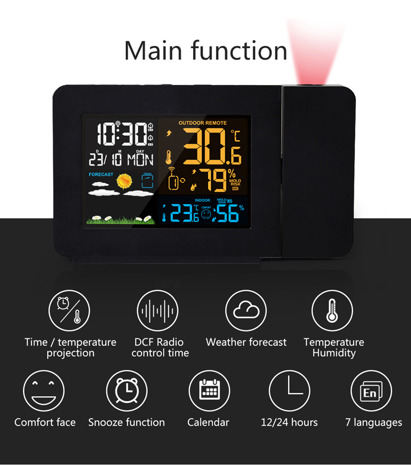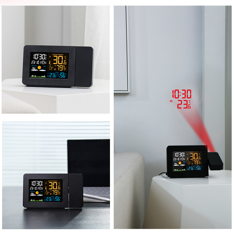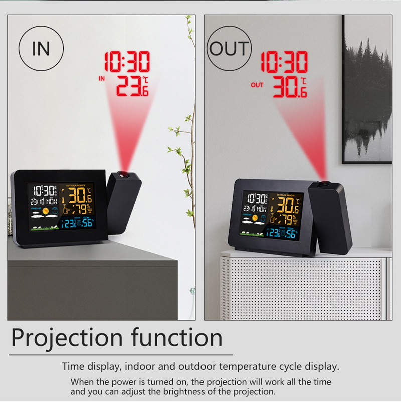 - 2 in 1: Color screen multifunctional weather clock and projection alarm clock