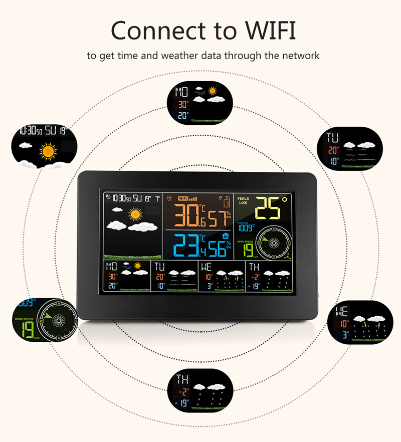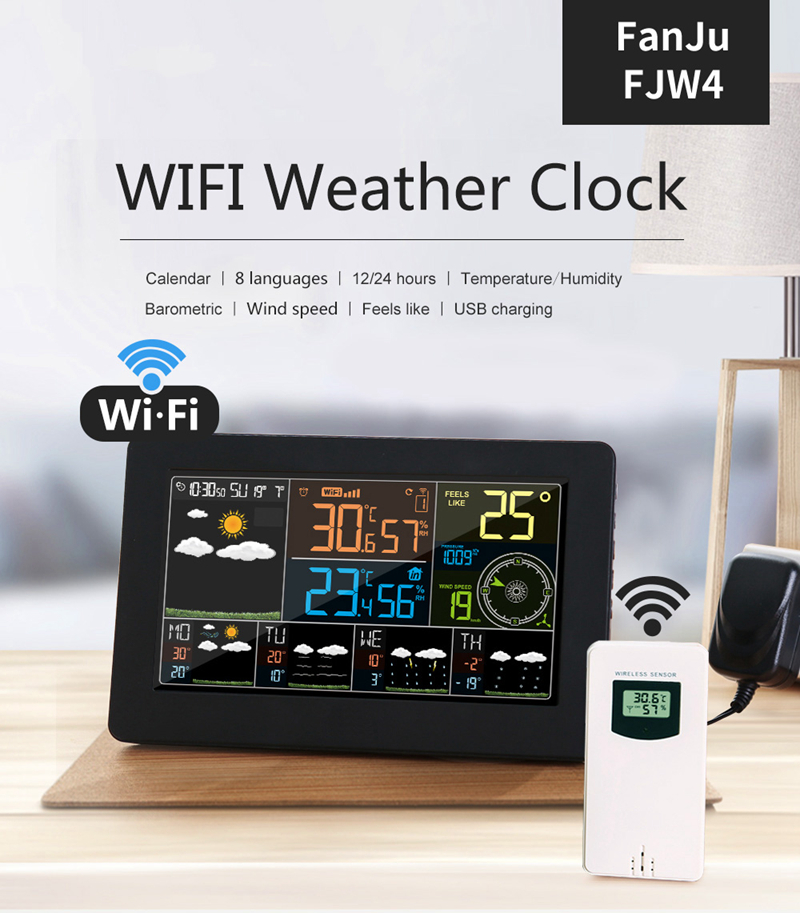 FanJu FJW4 Wifi Weather Station Weather Clock Wind Speed Paring Mode W003 Indoor Outdoor Temperature