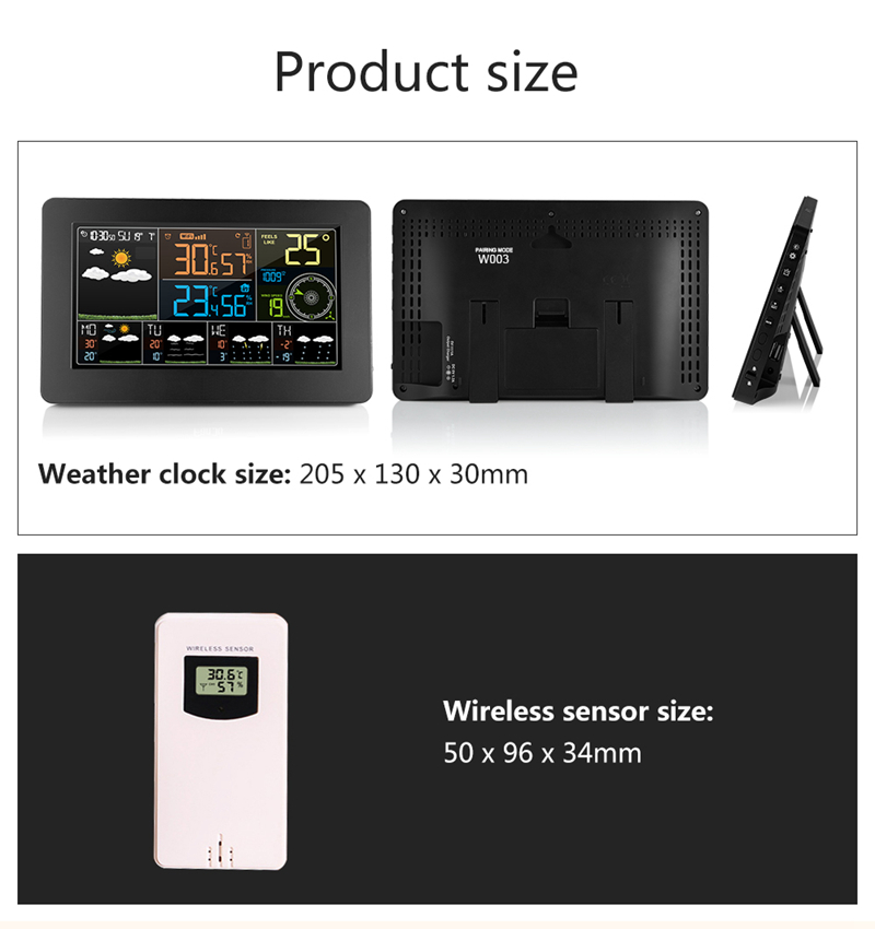 16. Up to 3 remote sensors can be connected at the same time, and the weather data of 3 rooms can be displayed respectively (Contains only 1 sensor)