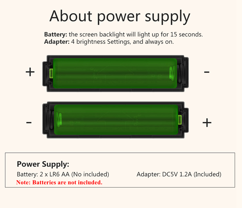 - Batteries are not included, please prepare by yourselves.