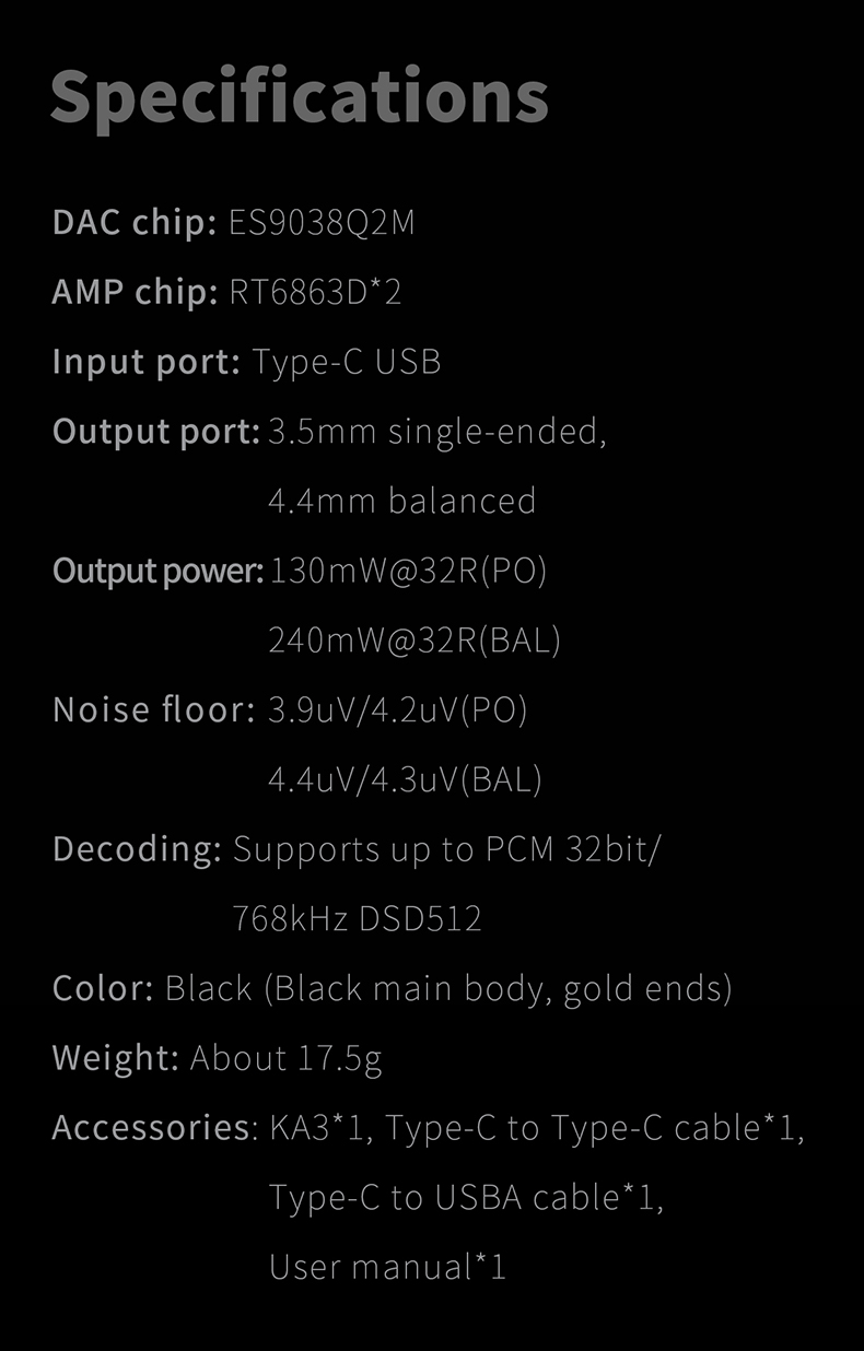 - Output port: 3.5mm single-ended, 4.4mm balanced
