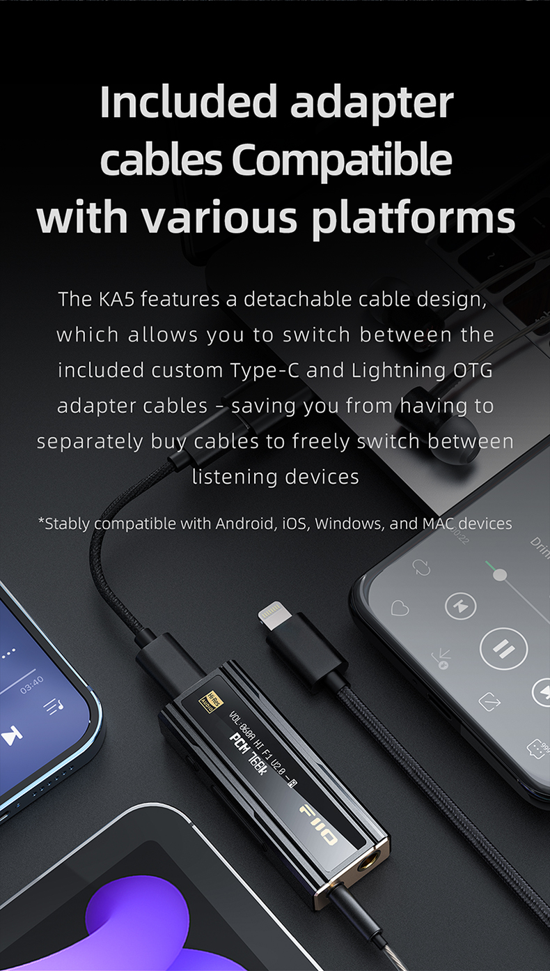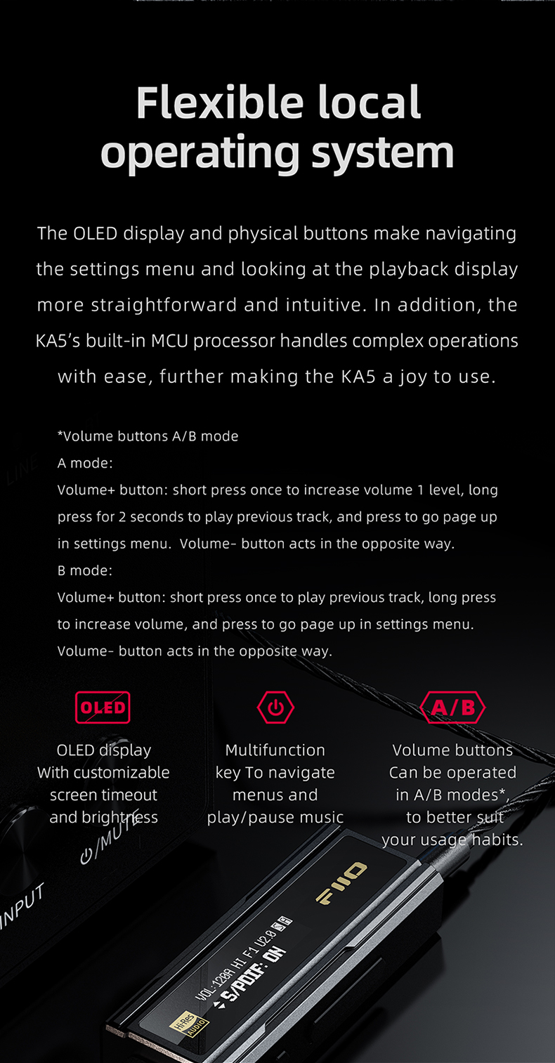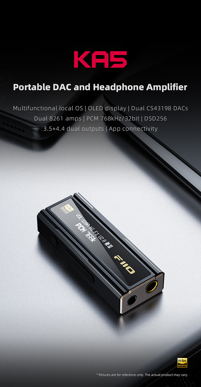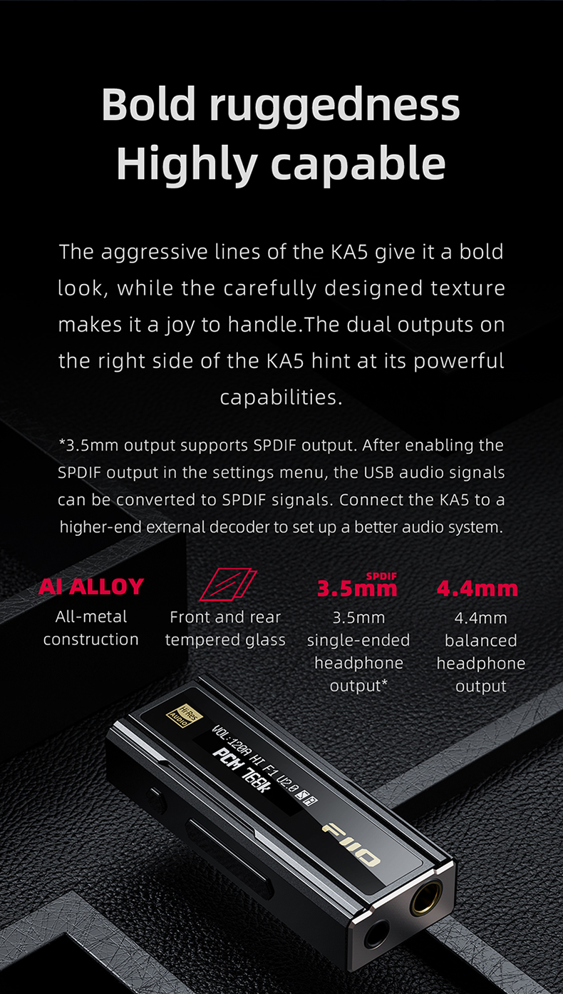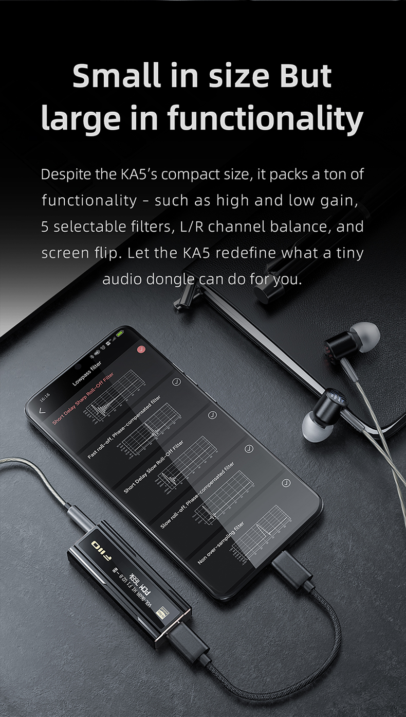FiiO KA5 Portable Headphone Amplifier High Fidelity Decoder Balanced 4.4 PC Sound Card with OLED Screen