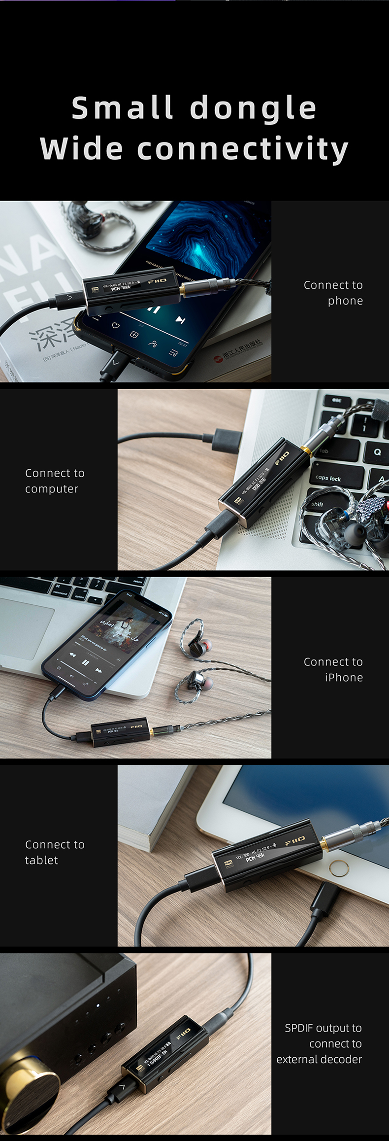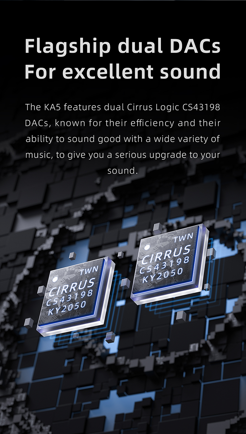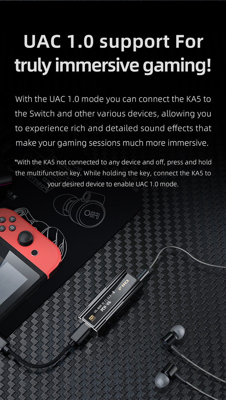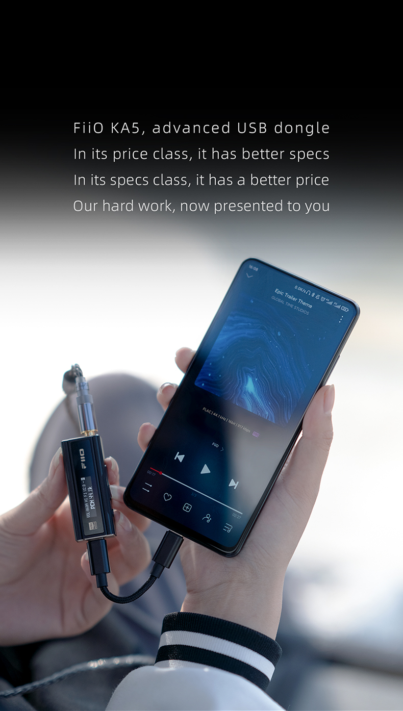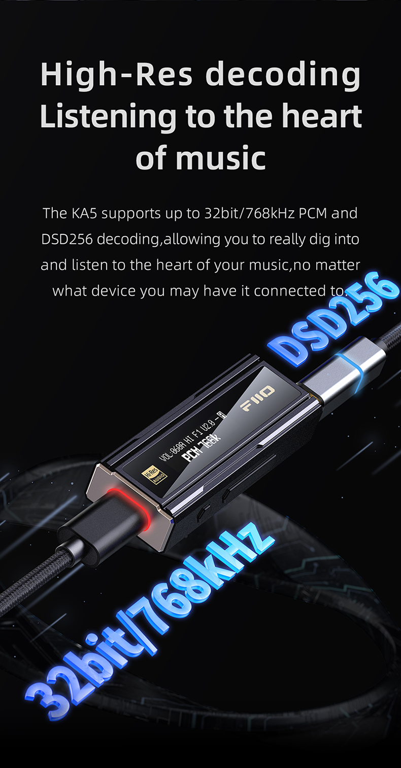 FiiO KA5 Portable Headphone Amplifier High Fidelity Decoder Balanced 4.4 PC Sound Card with OLED Screen