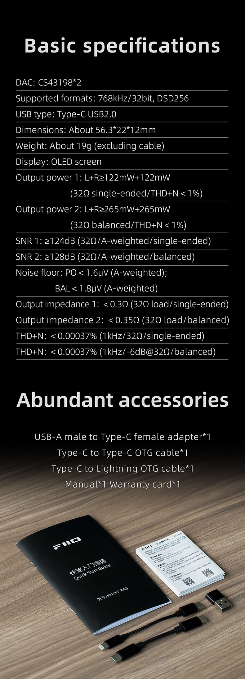 - THD + N: <0.00037% (1kHz/32ohm/single-end)