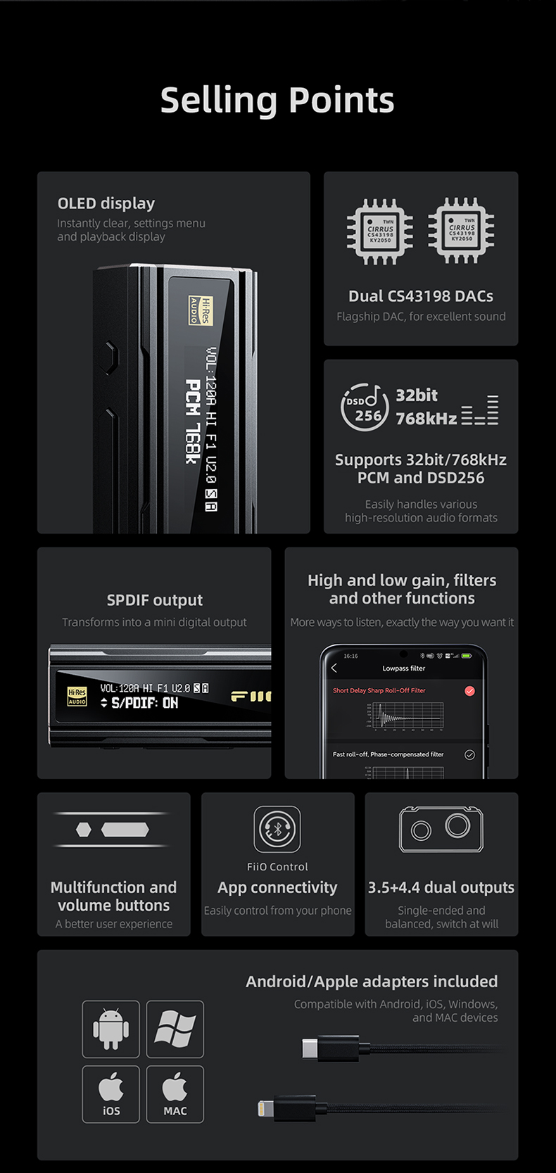 - THD + N: <0.00037% (1kHz/-6dB at 32ohm/balanced)