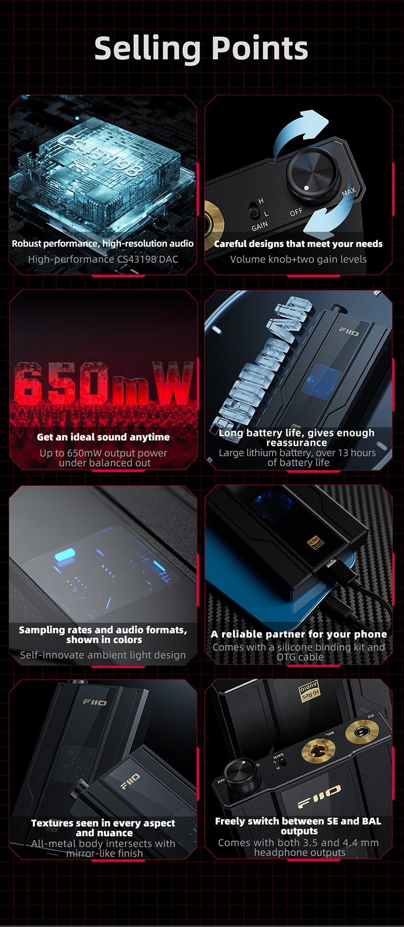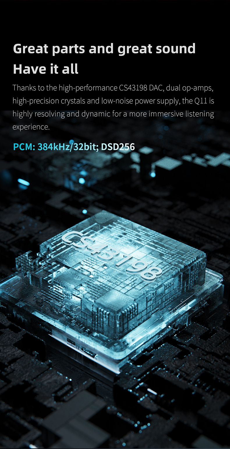 FiiO Q11 Portable DAC Headphone Amplifier High Performance DAC CS43198 384KHz/32Bit DSD256 3.5mm and 4.4mm Output