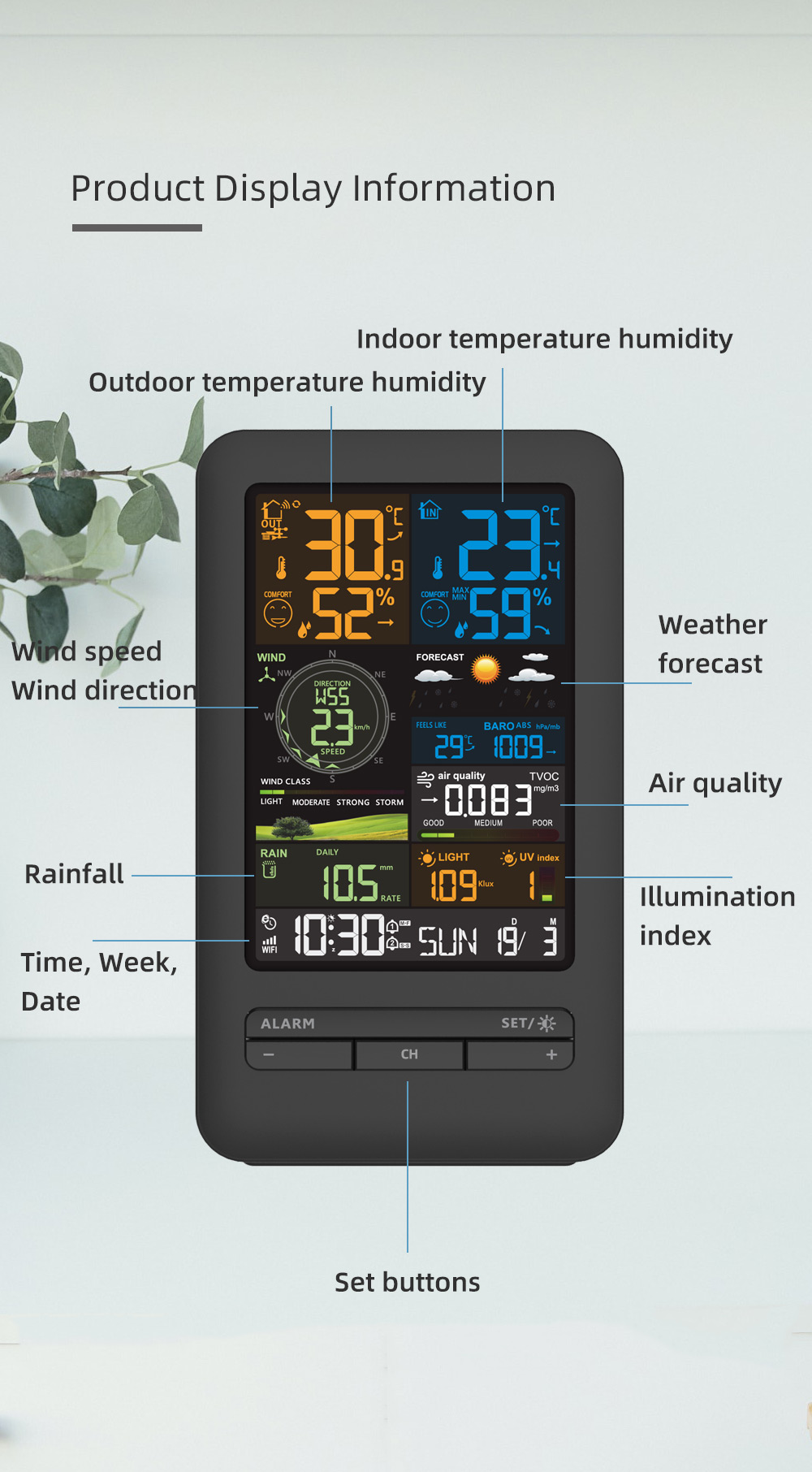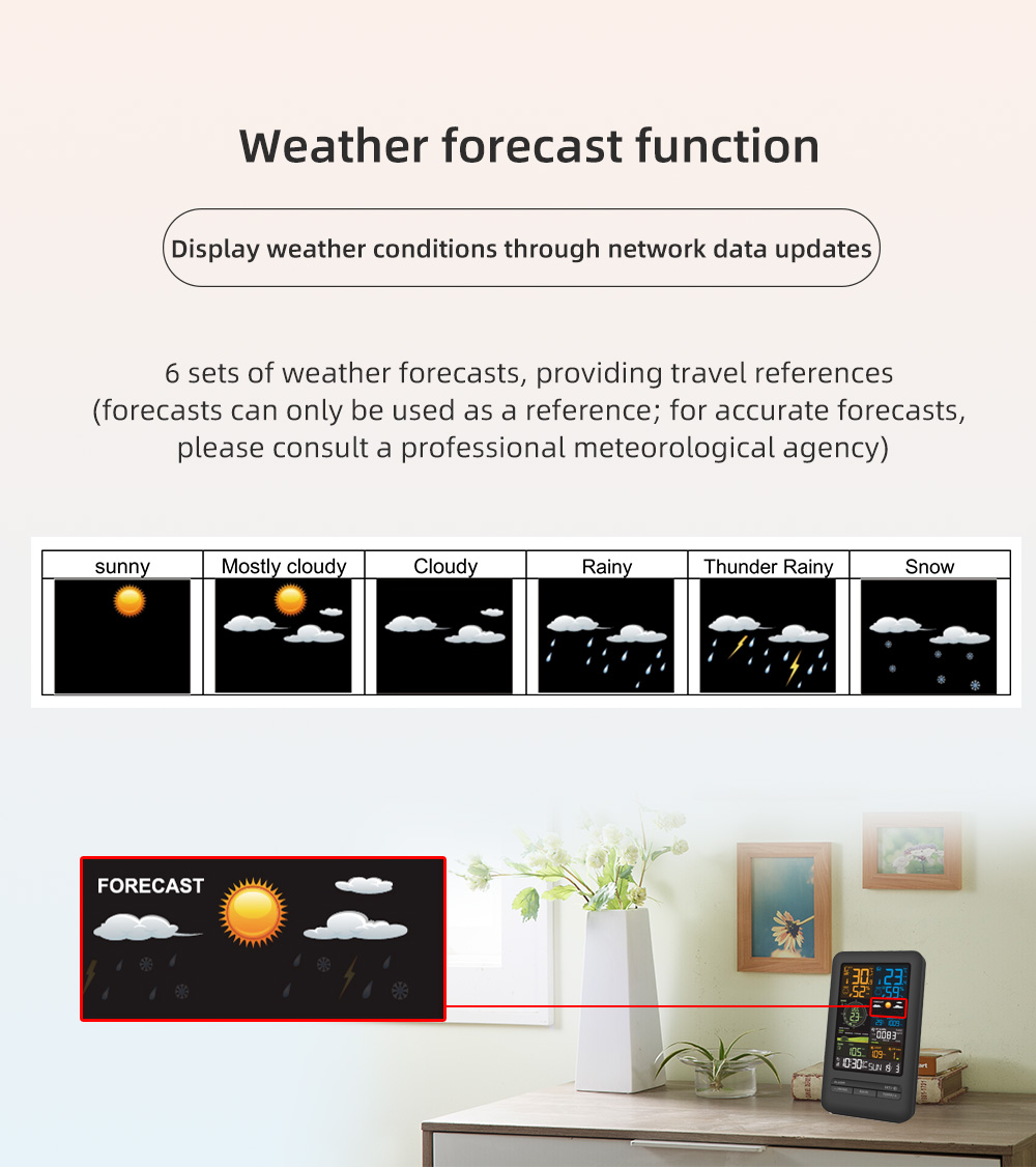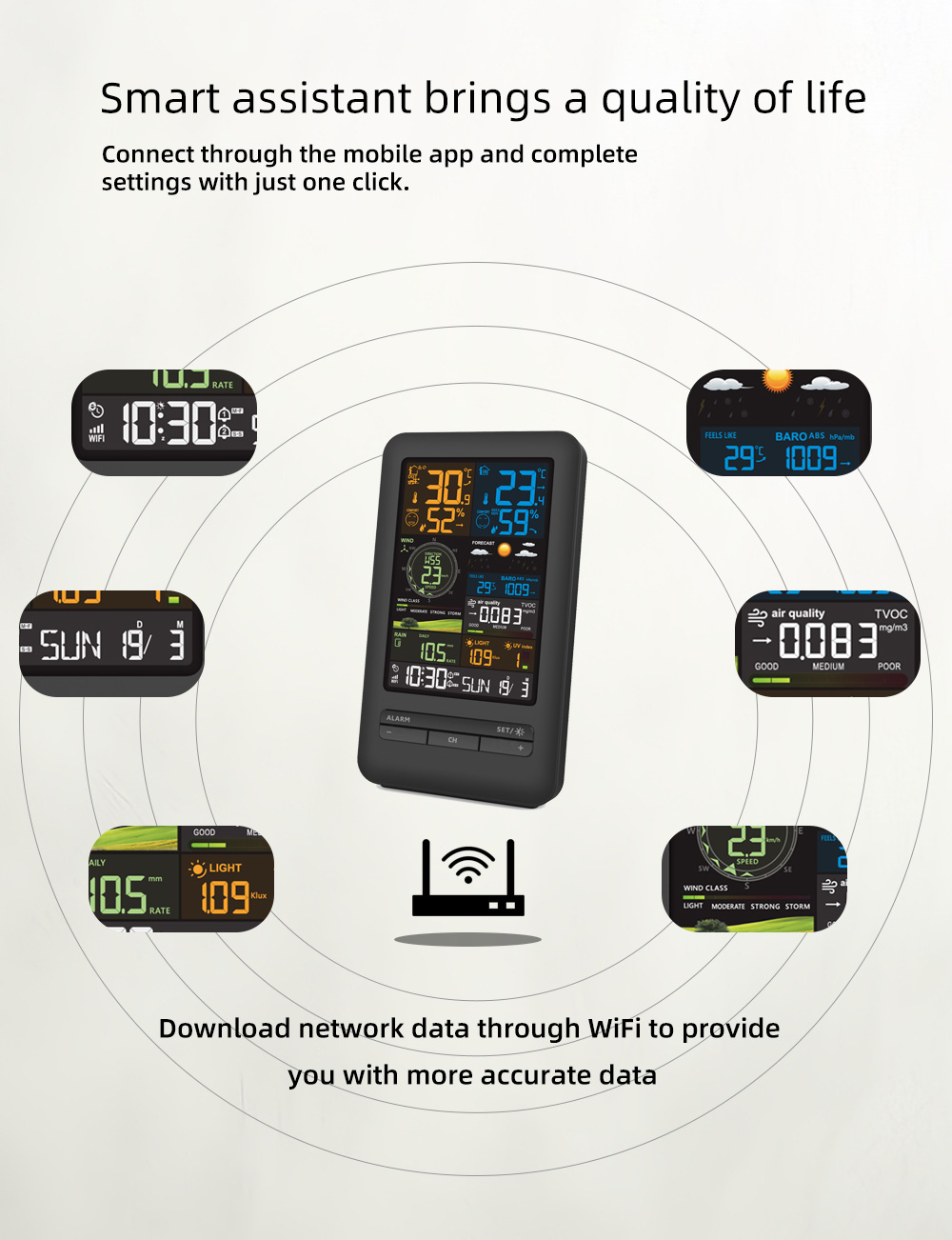 FJ3395TY-2 WiFi Bluetooth Smart Weather Station Full Function Weather Forecast Digital Clock Support for TUYA APP