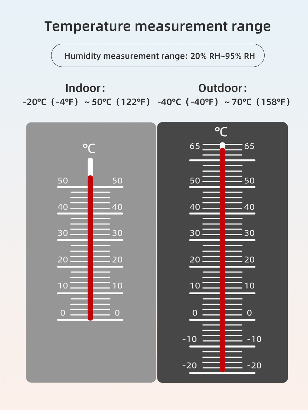 Maximum range of indoor and outdoor humidity detection display: 20% to 95%