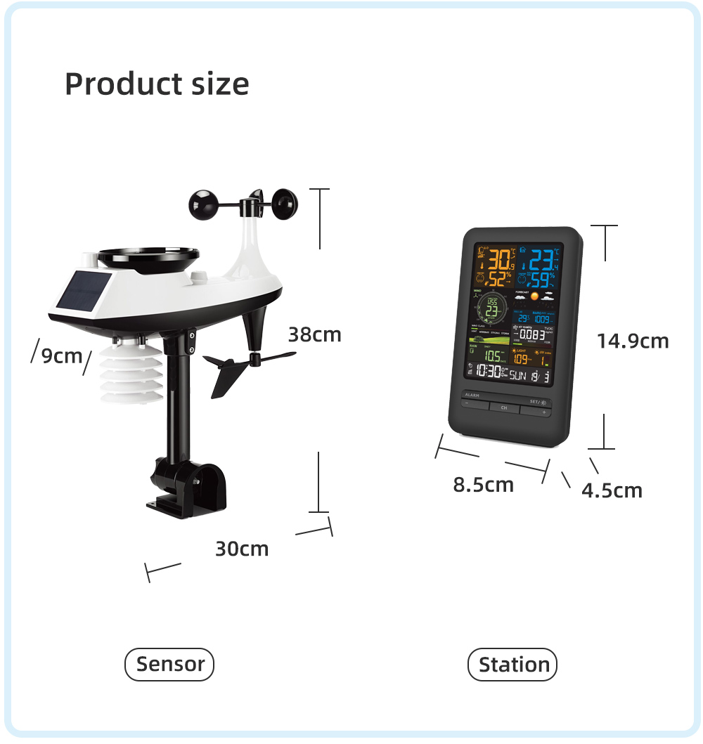 - Wireless outdoor sensors: 433.92 MHz RF transmission frequency, and the transmission range of 100 meters (300 feet) is in an open area.