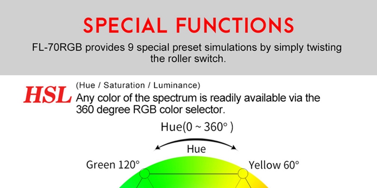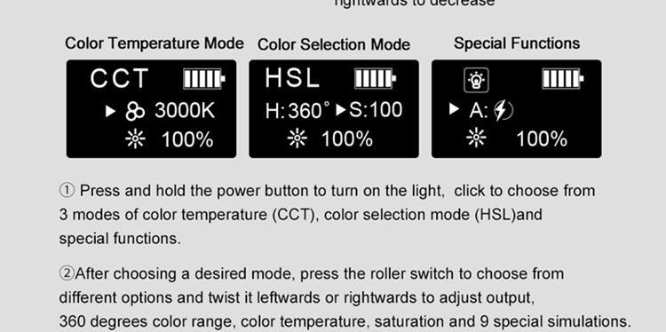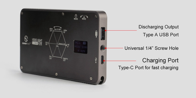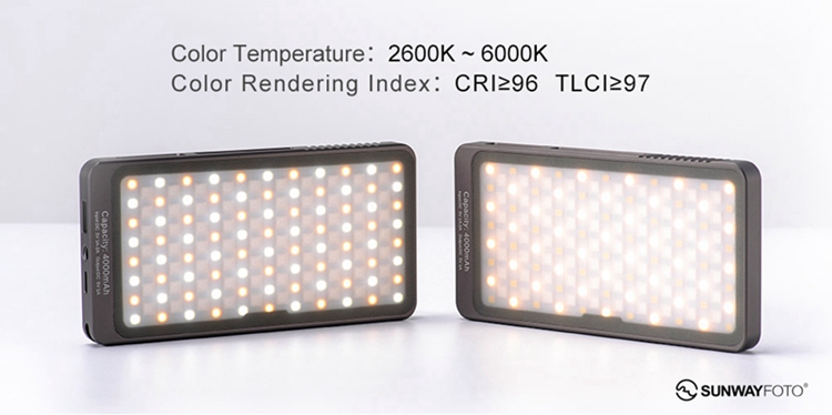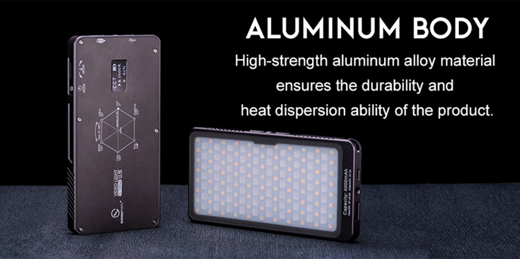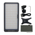 Easy to Carry RGB Video Light is designed with adjustable color temperature 2600-6000K. With a full spectrum 360° color rang selector, all light color desired can be selected, plus 9 special preset simulations applicable to different situations.
