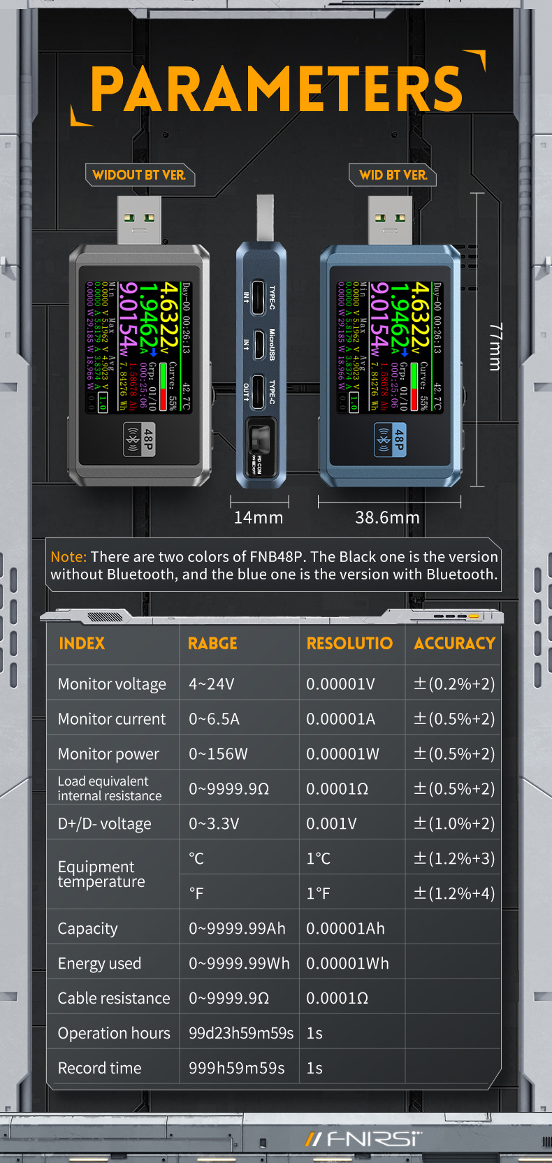 FNB48P Bluetooth Version Blue High Quality USB Tester with Bluetooth for Mobile Phone DC Charging Test