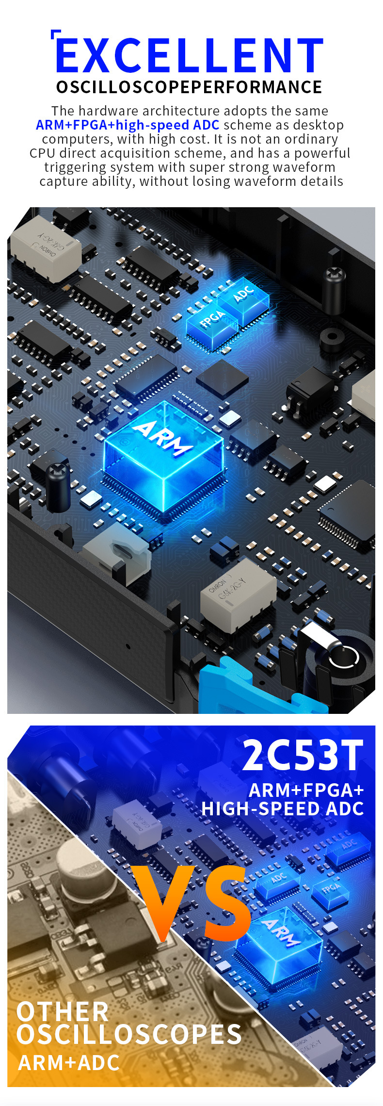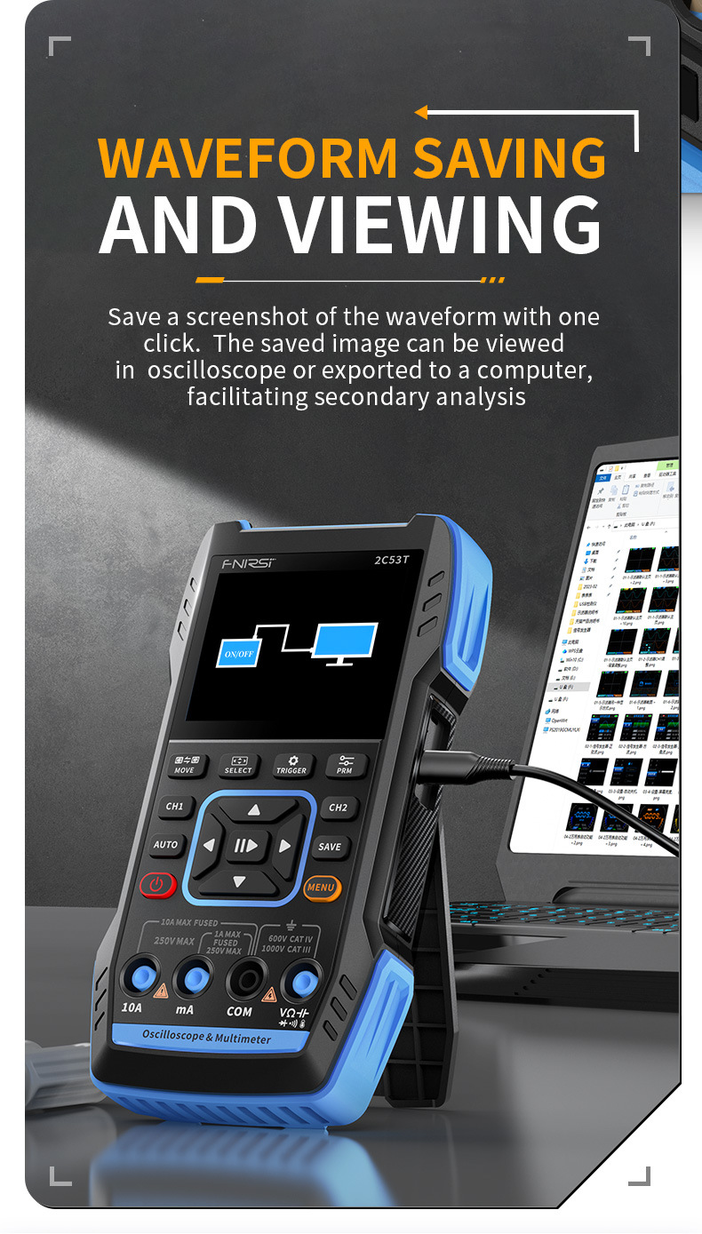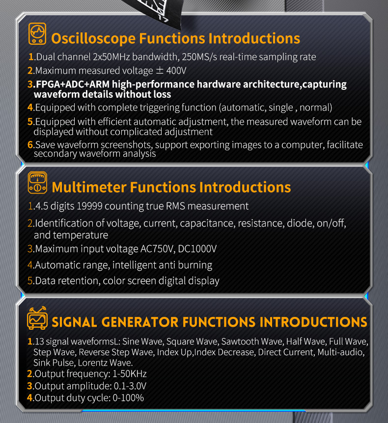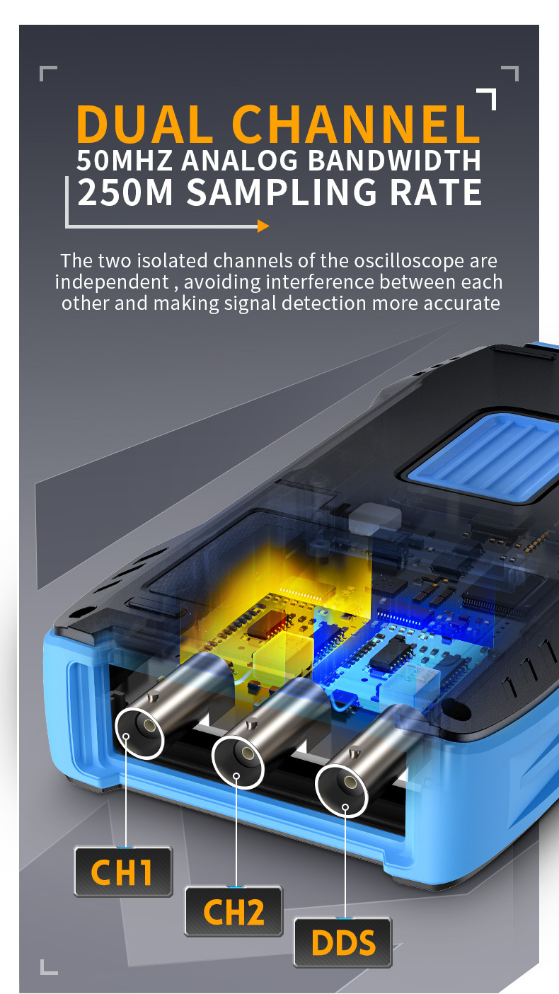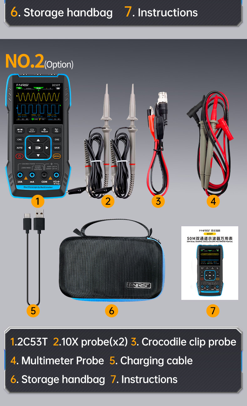 FNIRSI 2C53T Advanced Version Dual Channel 50MHz Digital Oscilloscope Multimeter Signal Generator with Two 10X Probes