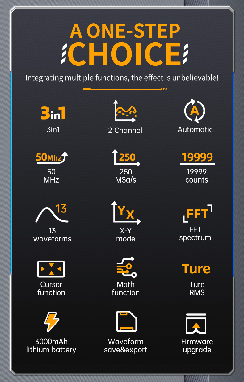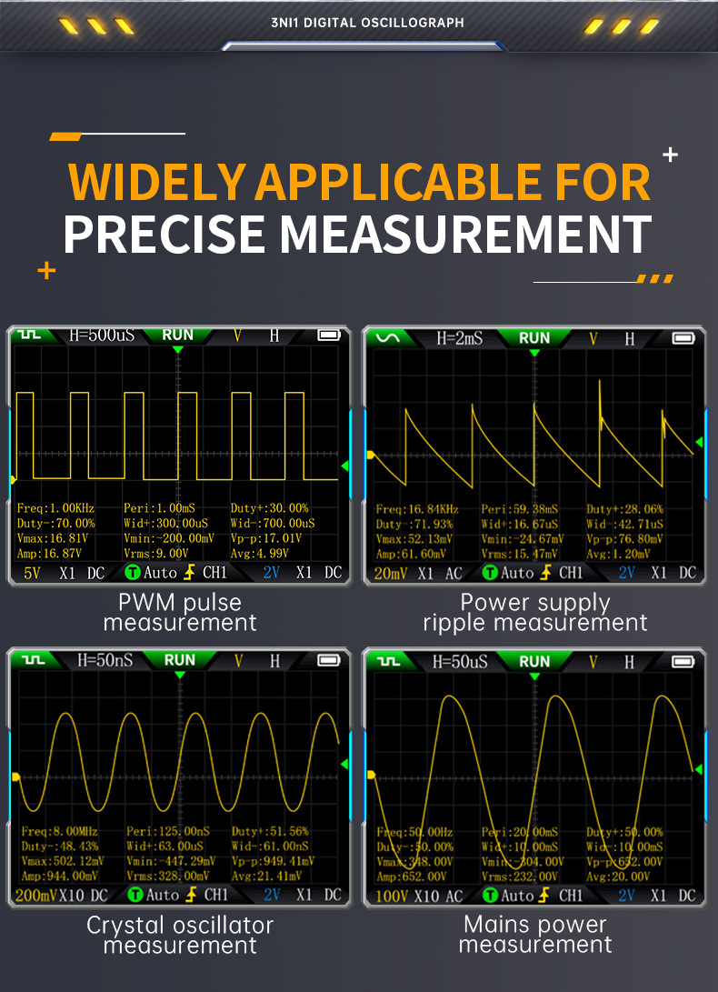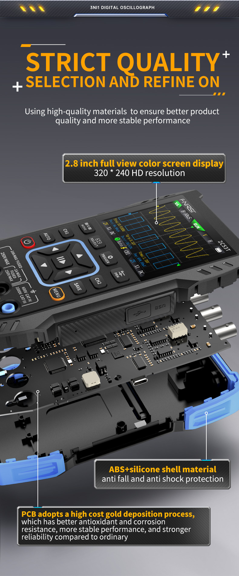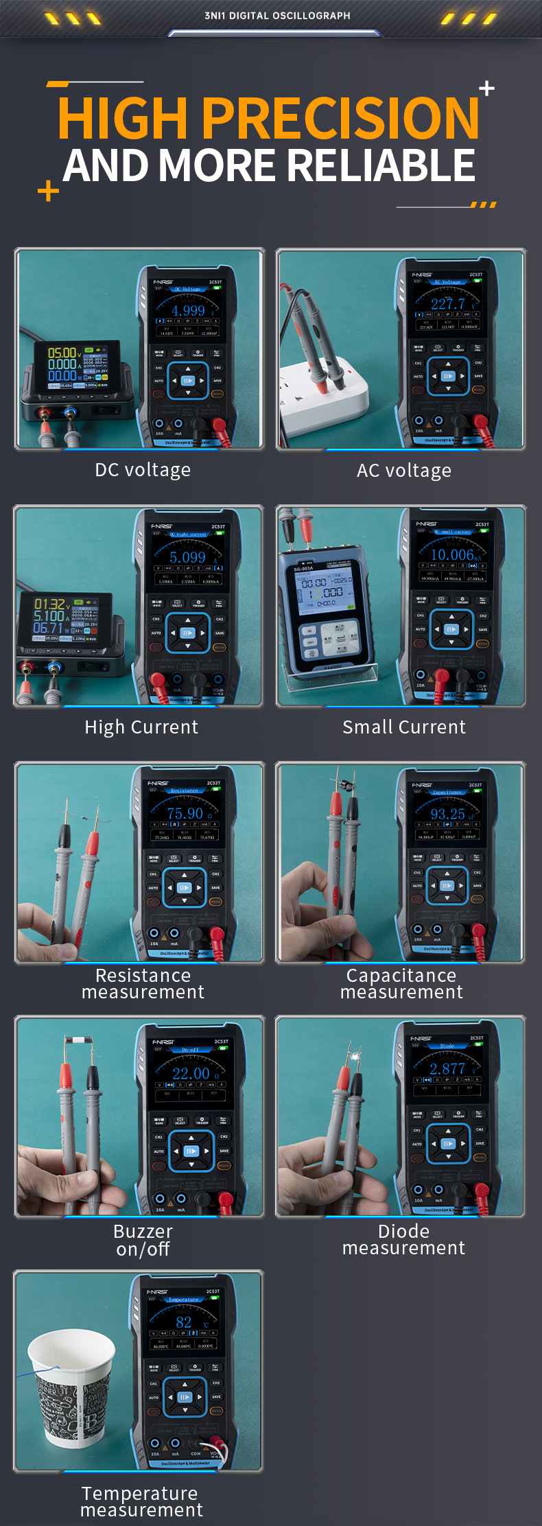 FNIRSI 2C53T Advanced Version Dual Channel 50MHz Digital Oscilloscope Multimeter Signal Generator with Two 10X Probes
