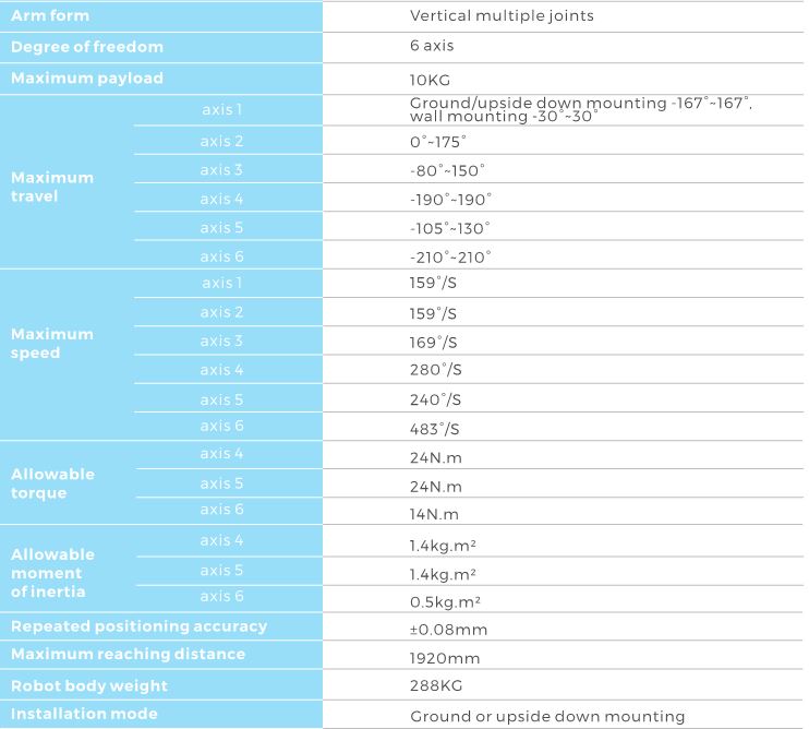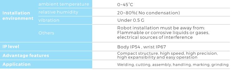 - With large working space and fast running speed, it is suitable for welding, spraying,loading and unloading, handling, sorting, assembling and other applications.
