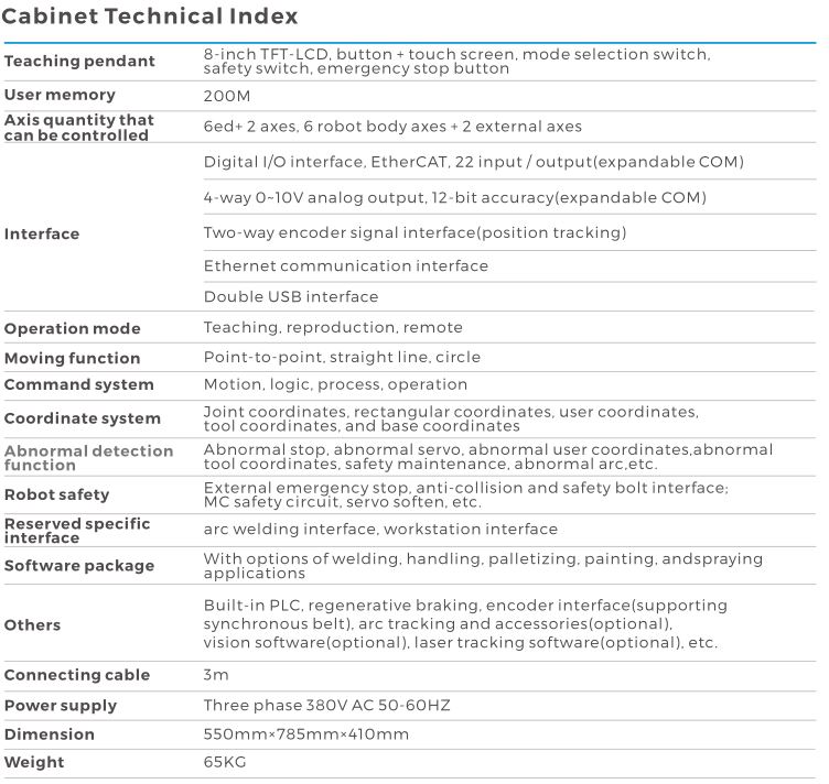 - The robot body is with dual-circuit gas pipe and meets welding and handling requirements.