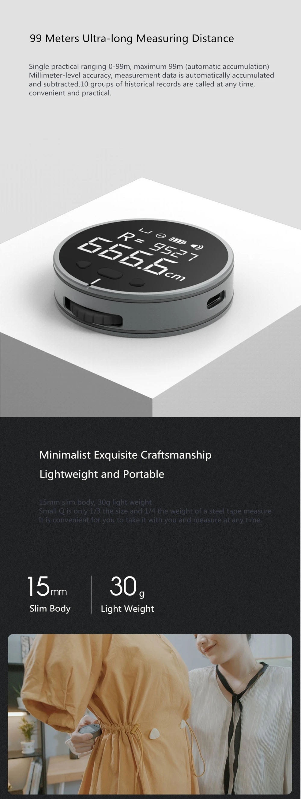 For Xiaomi DUKA Little Q Electronic Ruler Portable Rangefinder Measuring Tape LCD Digital Screen