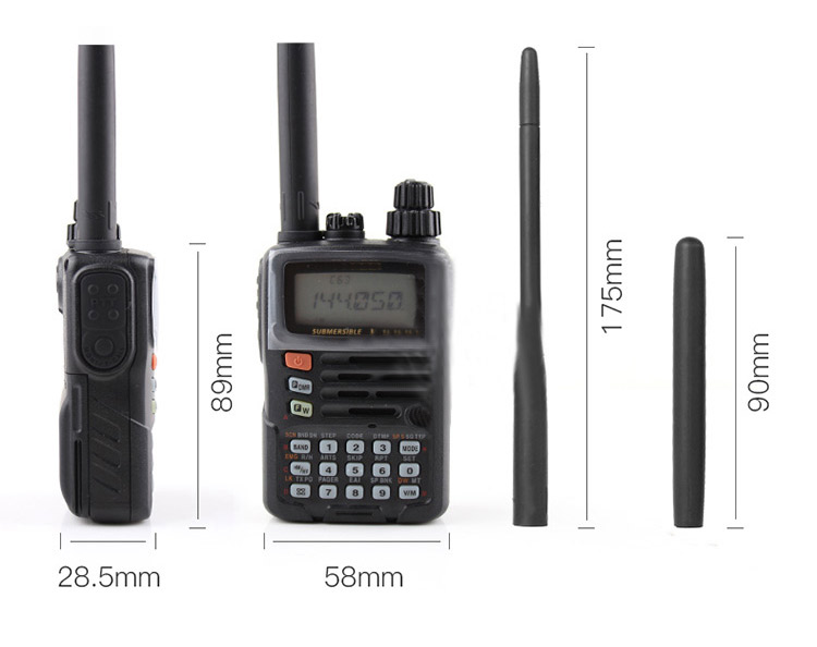 - Frequency range: transmitting: 50-54, 140-174, 420-470MHz; receiving: 0.5-999MHz