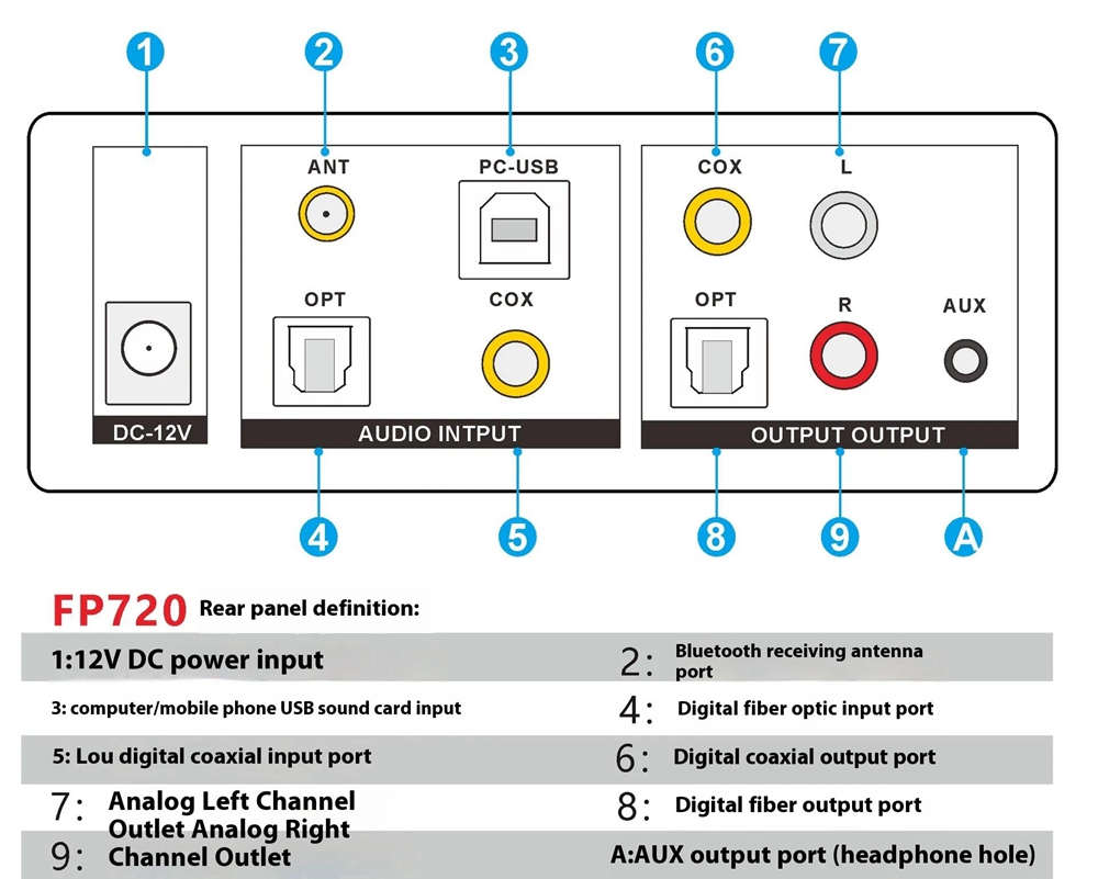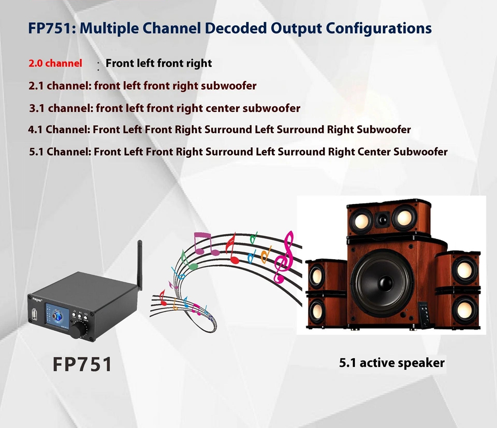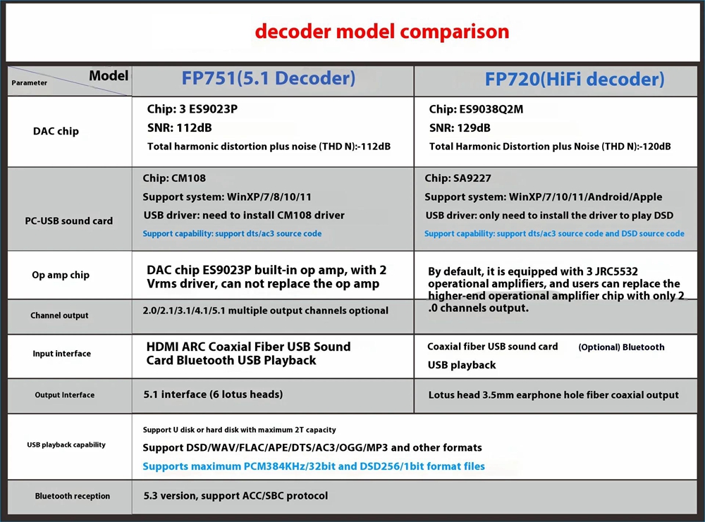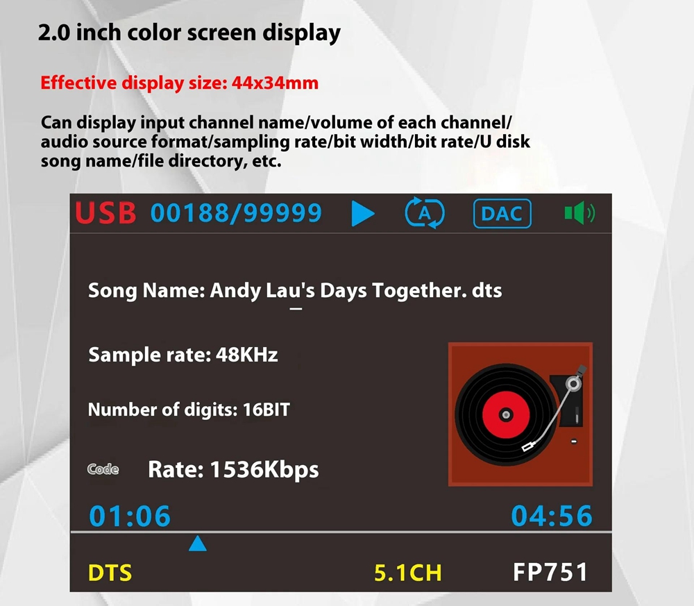 FP720 HiFi Audio Decoder Bluetooth5.3 DSD Digital Turntable ES9038Q2M DAC 2-inch Color Screen with SA9227 Sound Card