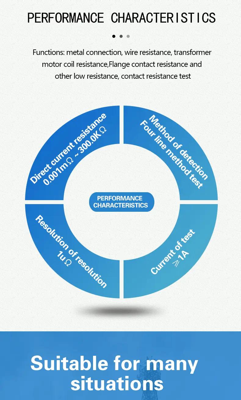 - FR3060A Digital DC low resistance meter, also known as micro-ohmmeter, ohmmeter, equalpotential tester, using the microprocessor technology, four-wire test, safety, precision and reliability. Mainly used to measure the wire resistance of cables, the contact resistance of switches, connectors, relays, the resistance of coils, motors, transformer windings, and equipment enclosures, lightning protection belts, ground beams, structures, cabinets, steel bars, water pipes, windows, guardrails, and heat dissipation Connection resistance test between metal components of objects such as devices, assembly lines, etc.