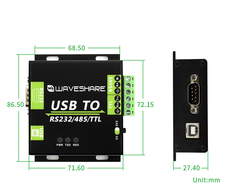 This is an industrial USB to RS232/485/TTL isolated converter with original FT232RL inside. It features embedded protection circuits such as power isolation, magnetically isolation, and TVS diode, etc. What's more, the USB TO RS232/485/TTL comes with an aluminum alloy enclosure, make it solid and durable to work.