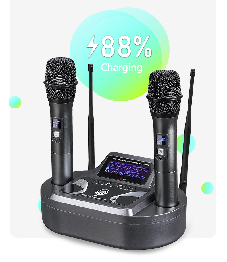 FU-677 Professional Wireless Microphone System KTV Cordless Microphone System with Two Mics Reverb Function