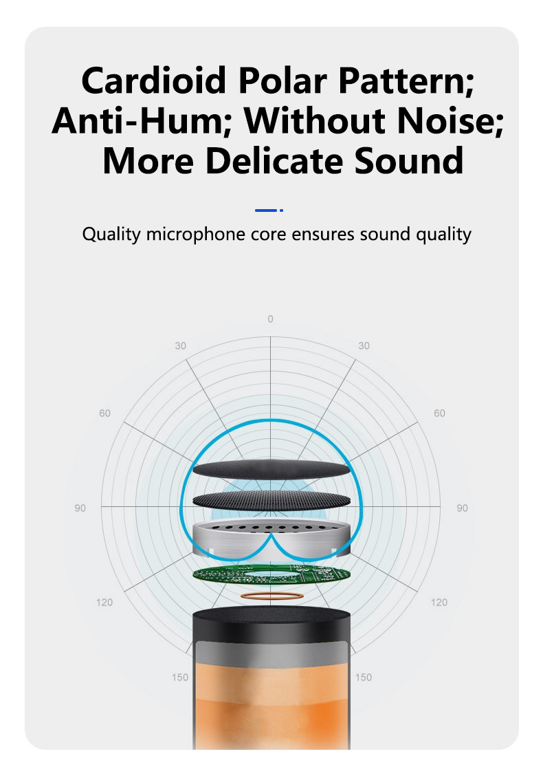 - Moving coil microphone with cardioid pickup. Metal mesh head with built-in windproof cotton. Cardioid pickup to fully reduce ambient noise