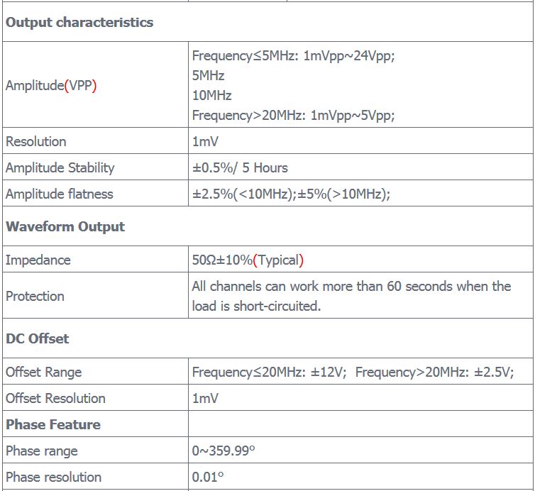 ◆ Output amplitude can be up to 24Vpp and amplitude resolution can be up to 1mV (0.001V).