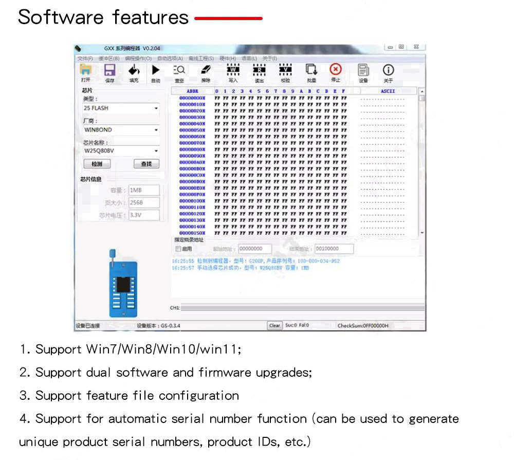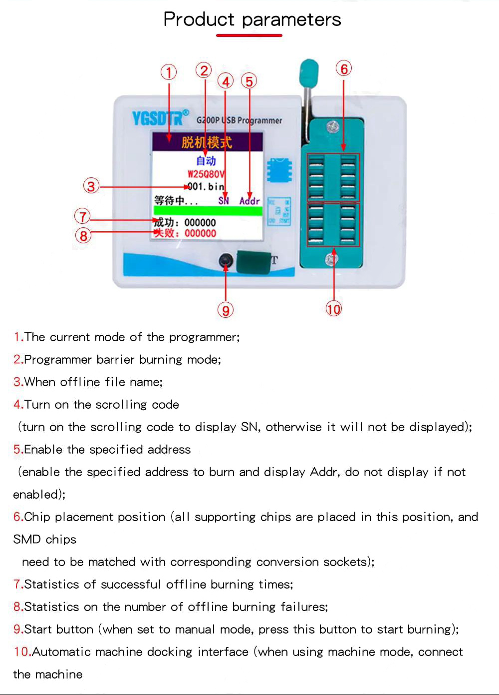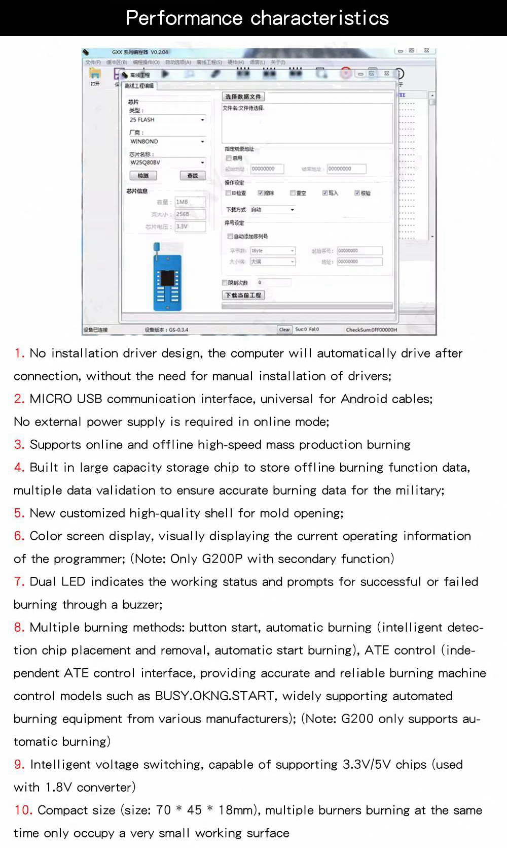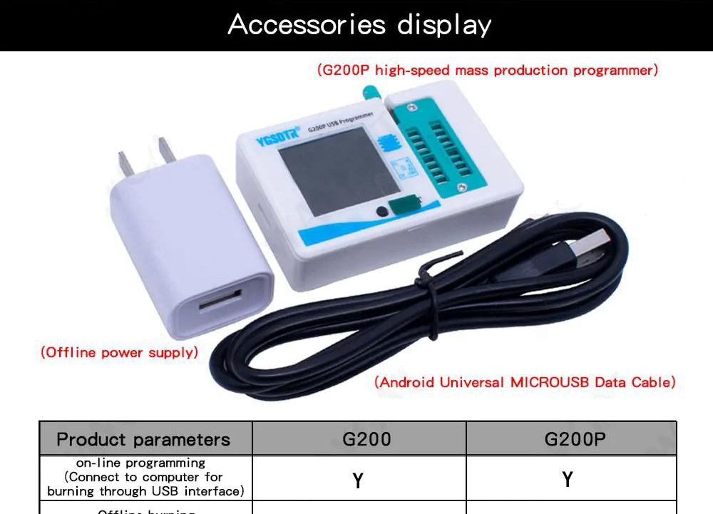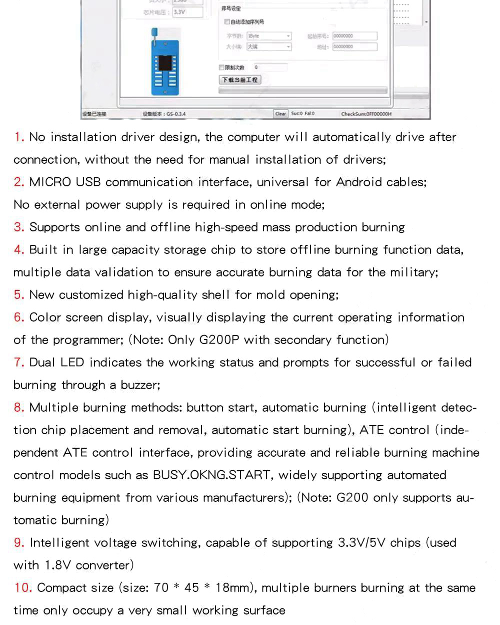 G200P High Speed Offline Programmer SPI FLASH EEPROM Writing 24/25/93/45 Programming Micro USB Communication