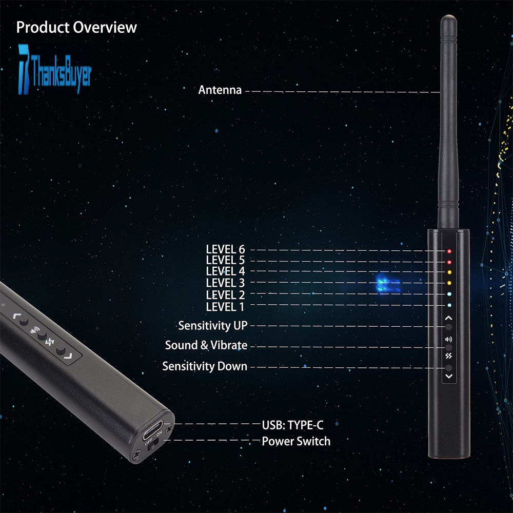4. Can be used to detect bugs or mini cameras installed in rooms, bedrooms, conference rooms, fitting rooms, hotels, cars, entertainment places, etc.